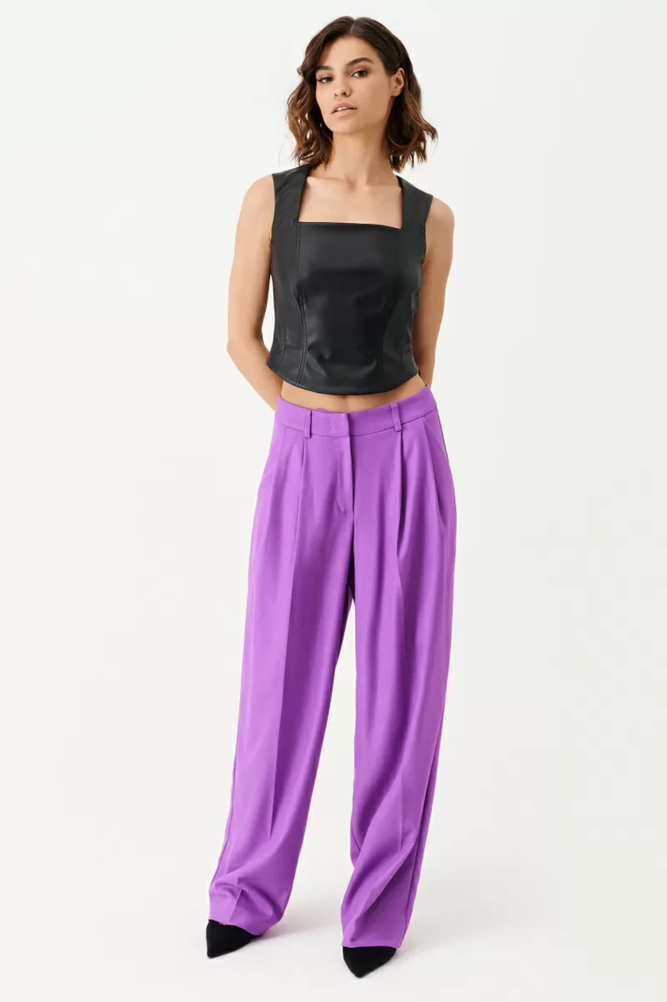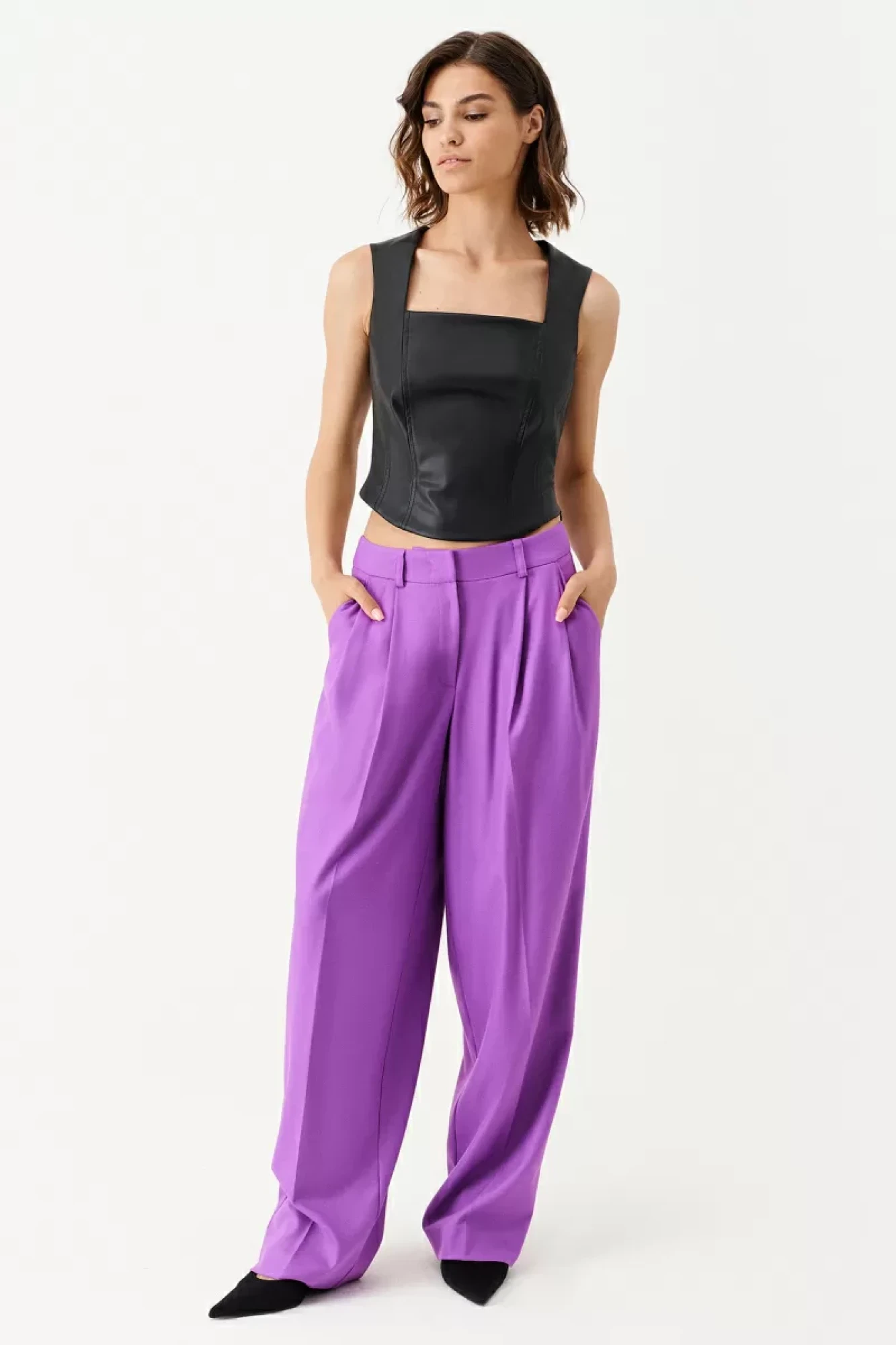 48 Брюки: Высота посадки - 28см, Длина брюк с поясом - 108см, Длина по внутреннему шву - 81см, Ширина брючин сверху - 81см, Обхват брюк по низу - 50см, Ширина по бедрам - 61см, Ширина по талии - 39см;