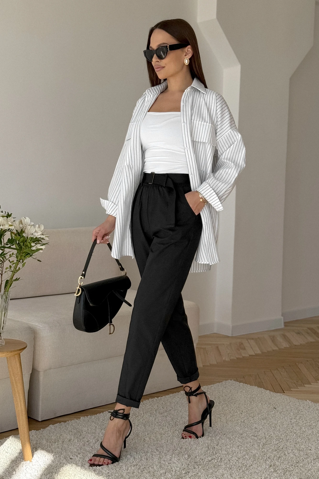 Ширина брючины по низу 16 см. Длина по боковому шву с учетом пояса 101 см