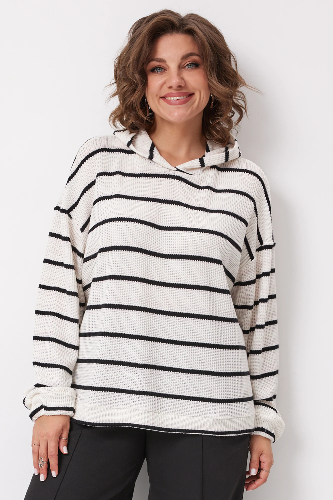 Предлагаем Вам интересную, невероятно комфортную модель, выполненную из мягкого вискозного трикотажа в полоску, которая с лёгкостью впишется в гардероб, позволяя создавать множество многослойных образов.