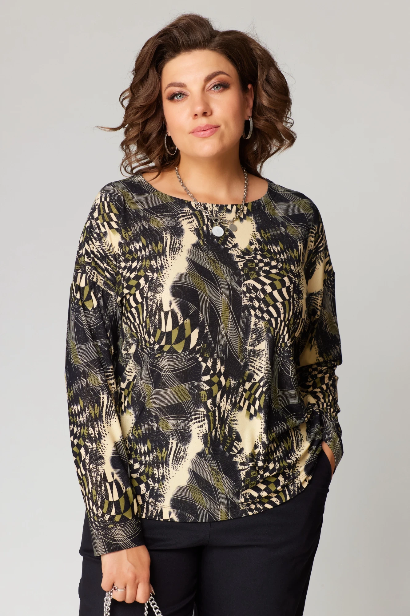 струящегося трикотажа(масло) с напылением серебро. Джемпер на столько