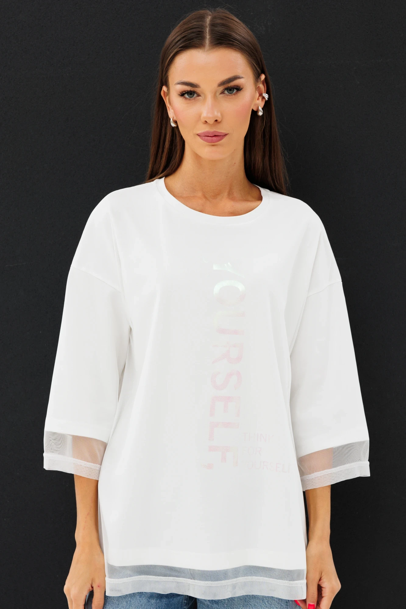 Сетка поверх изделия добавляет джемперу легкости и воздушности, создавая интересный визуальный эффект. Этот джемпер прекрасно подойдет как для повседневного ношения, так и для особых случаев, добавляя вашему образу нотку современности и креативности.