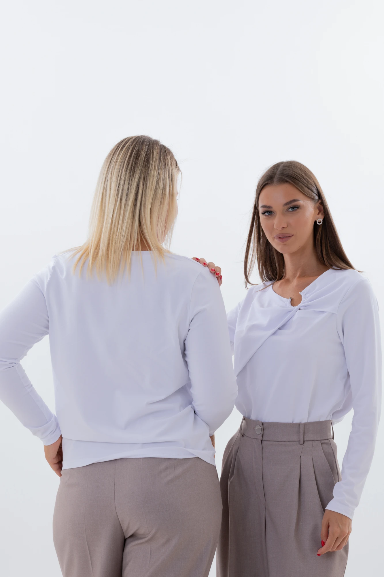 Центральным элементом дизайна становится декоративная кокетка по переду, увенчанная фирменным металлическим кольцом. Эта деталь — не просто украшение, а скульптурный акцент, добавляющий образу архитектурную четкость и современное звучание. Кольцо становится холодным, весомым контрастом нежности мягкого футера.