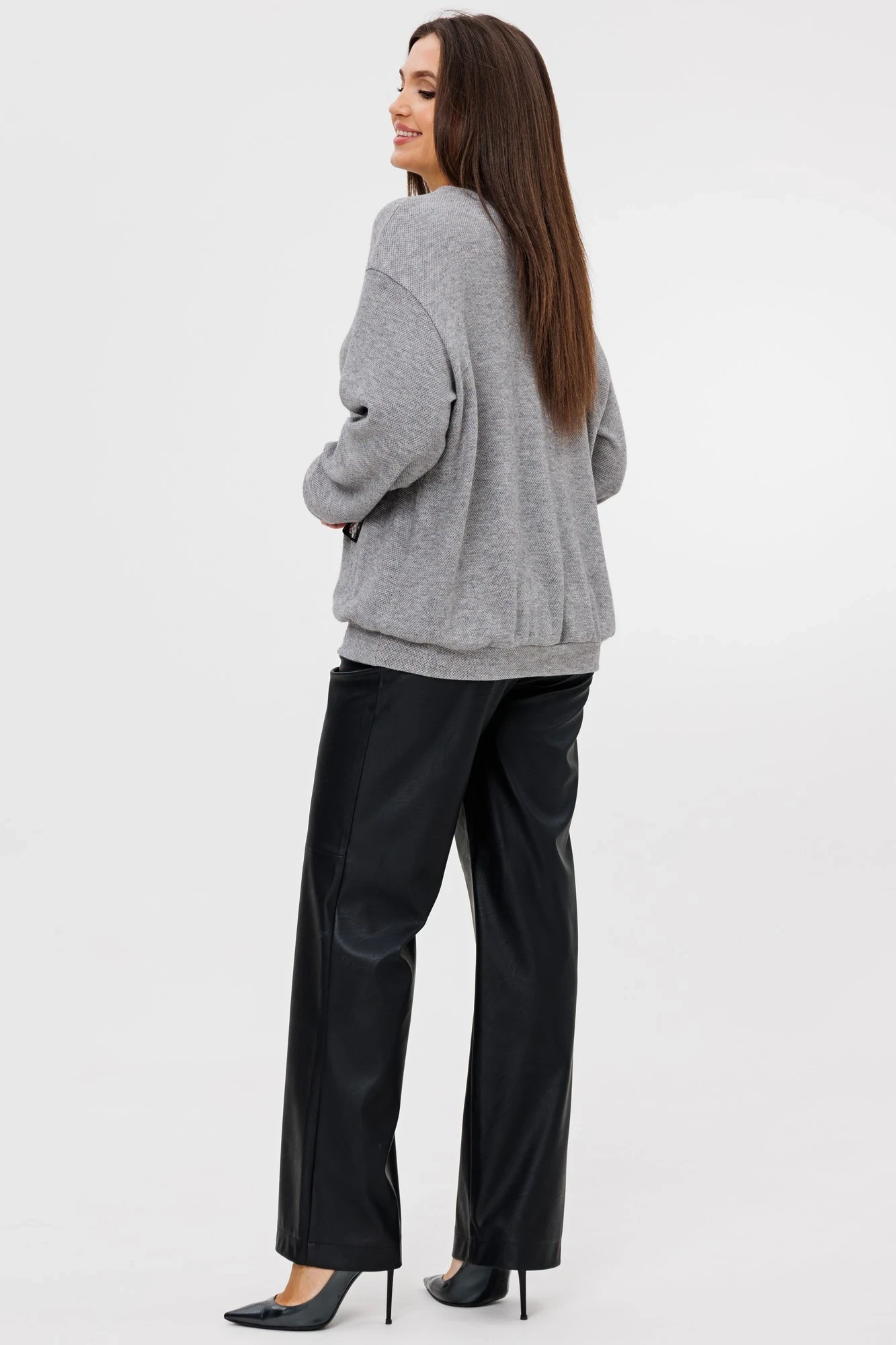 Джемпер будет идеально смотреться с нашими кожаными брюками 2073 (на фото), также обе модели можно приобрести в составе комплекта 3110. Образ будет актуален как на вечеринке, так и в повседневном использовании.