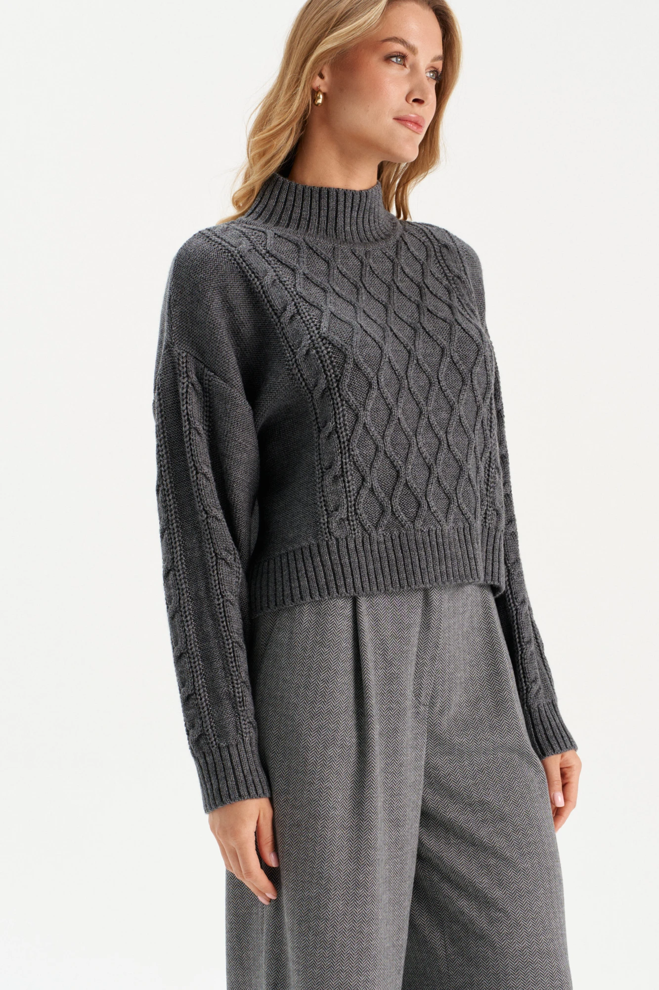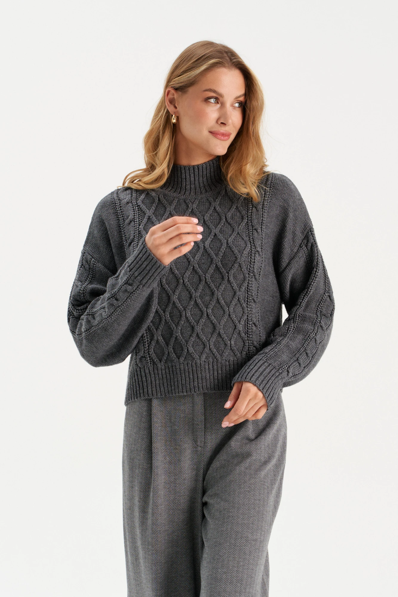 Современный дизайн: Узоры в виде ромбов и высокий ворот придают джемперу оригинальный и модный вид, делая его универсальным для различных образов.