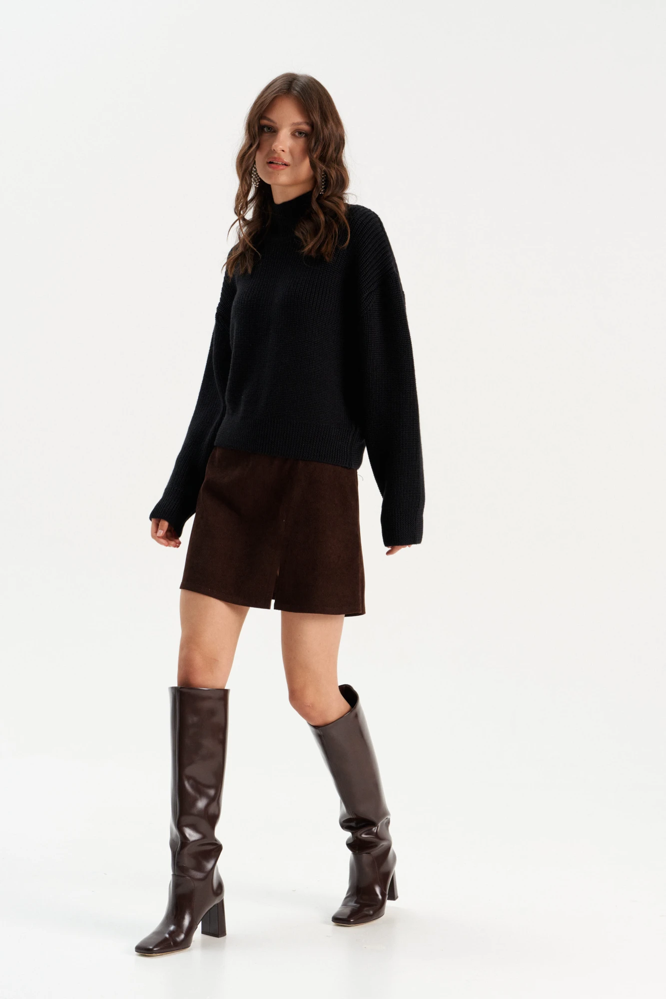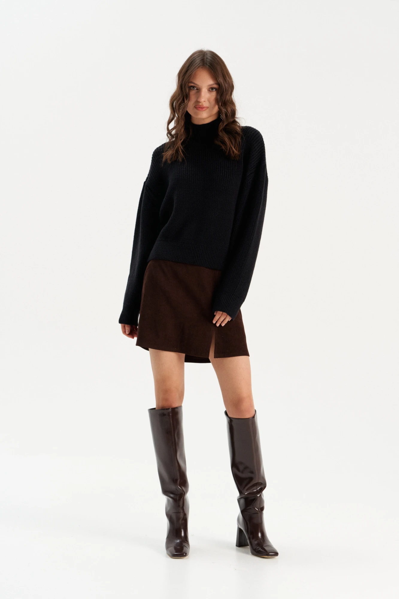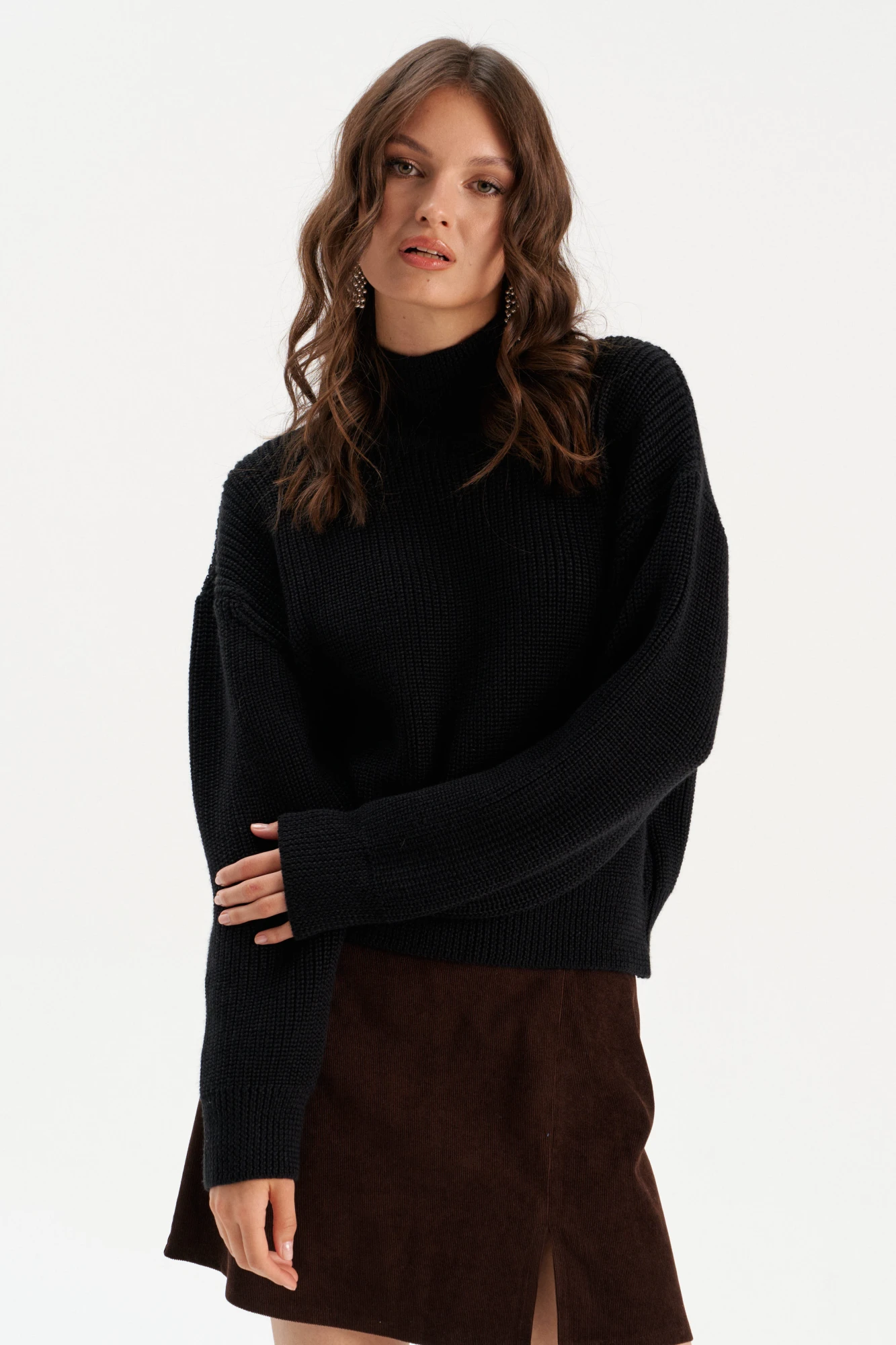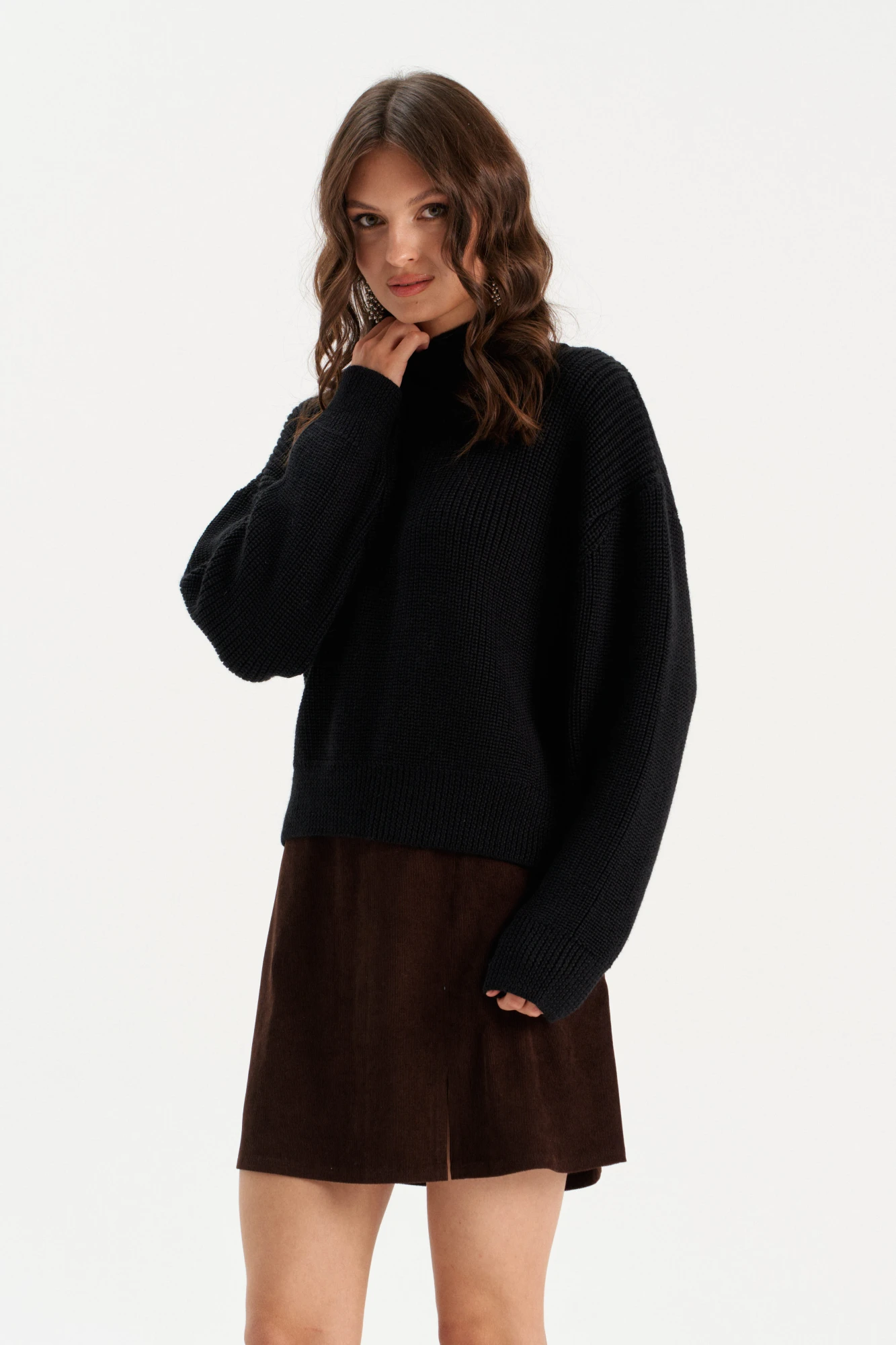 Стильный дизайн: Высокий ворот и простой, но элегантный крой делают этот джемпер универсальным для любого случая.