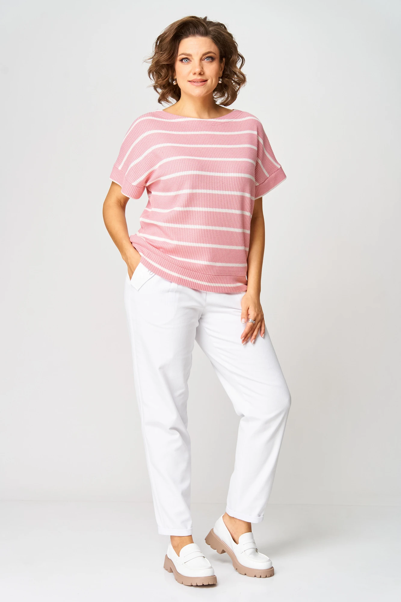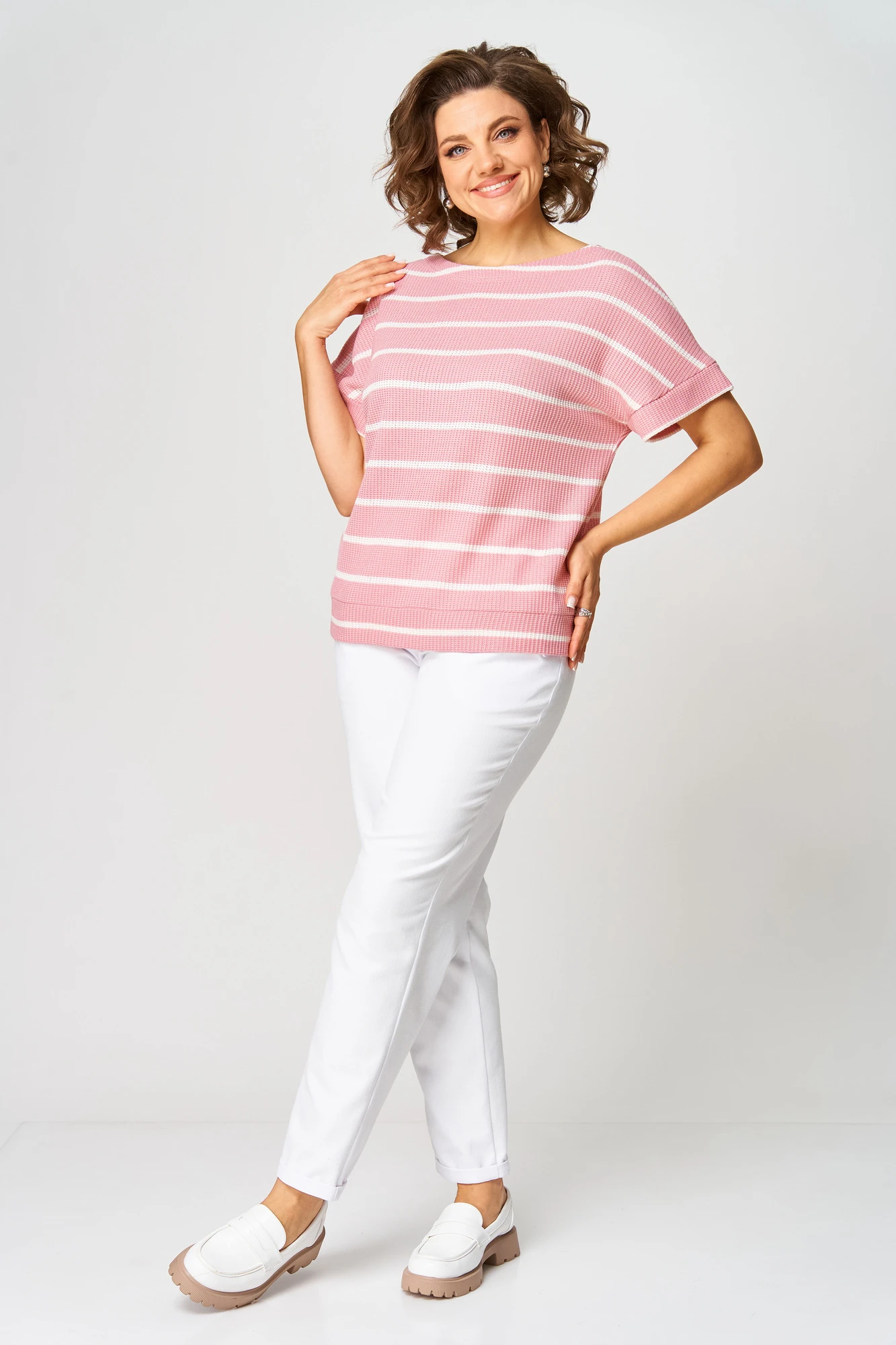 Рост: 164Джемпер женский из трикотажной вязанной ткани. Свободного силуэта. Спущенное плечо, оформлено притачной манжетой. Низ джемпера оформлен притачным поясом. Вырез горловины по спинке треугольный.