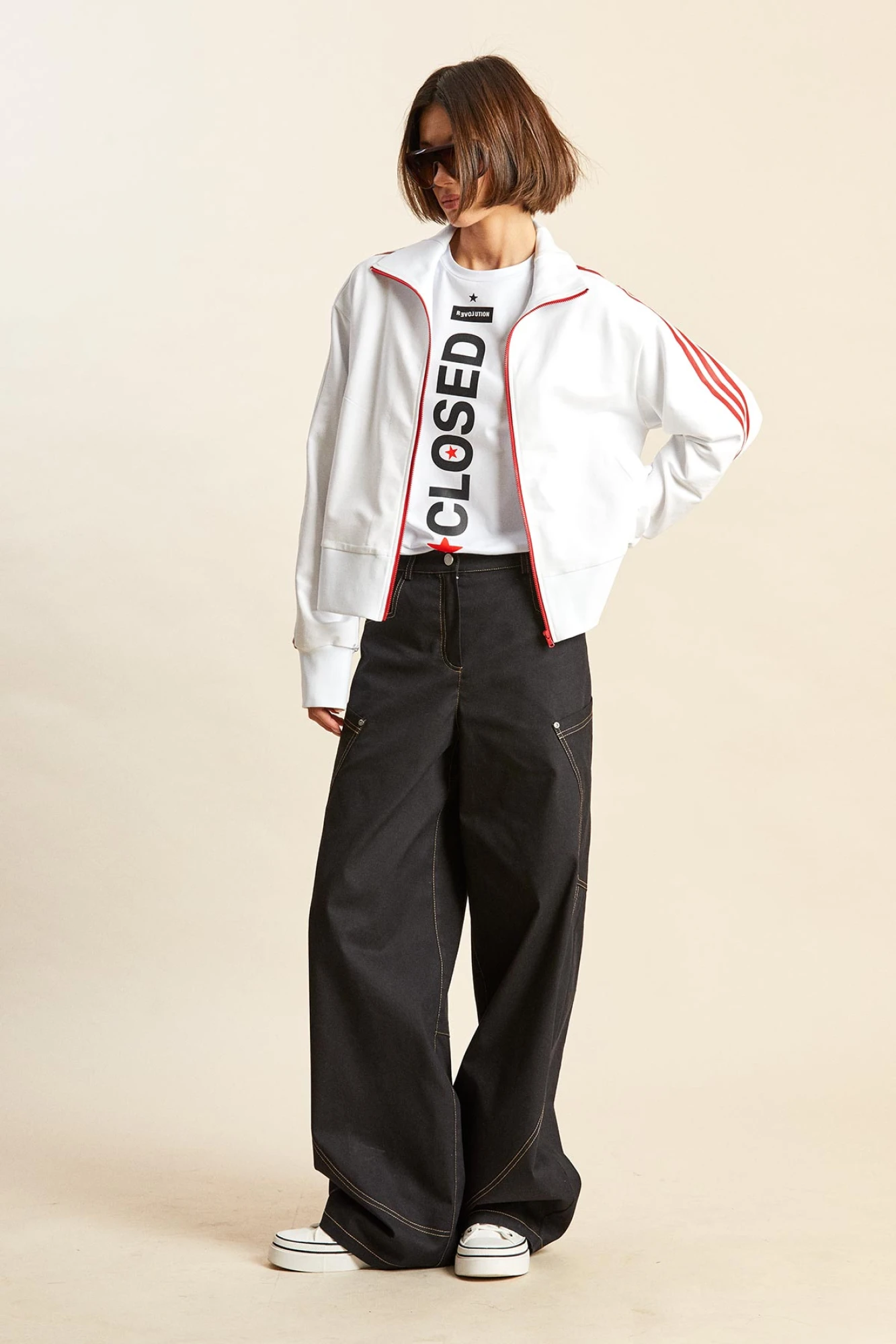 - вдоль рукавов, линии плеча и через воротник проходят широкие лампасы с печатными полосками.