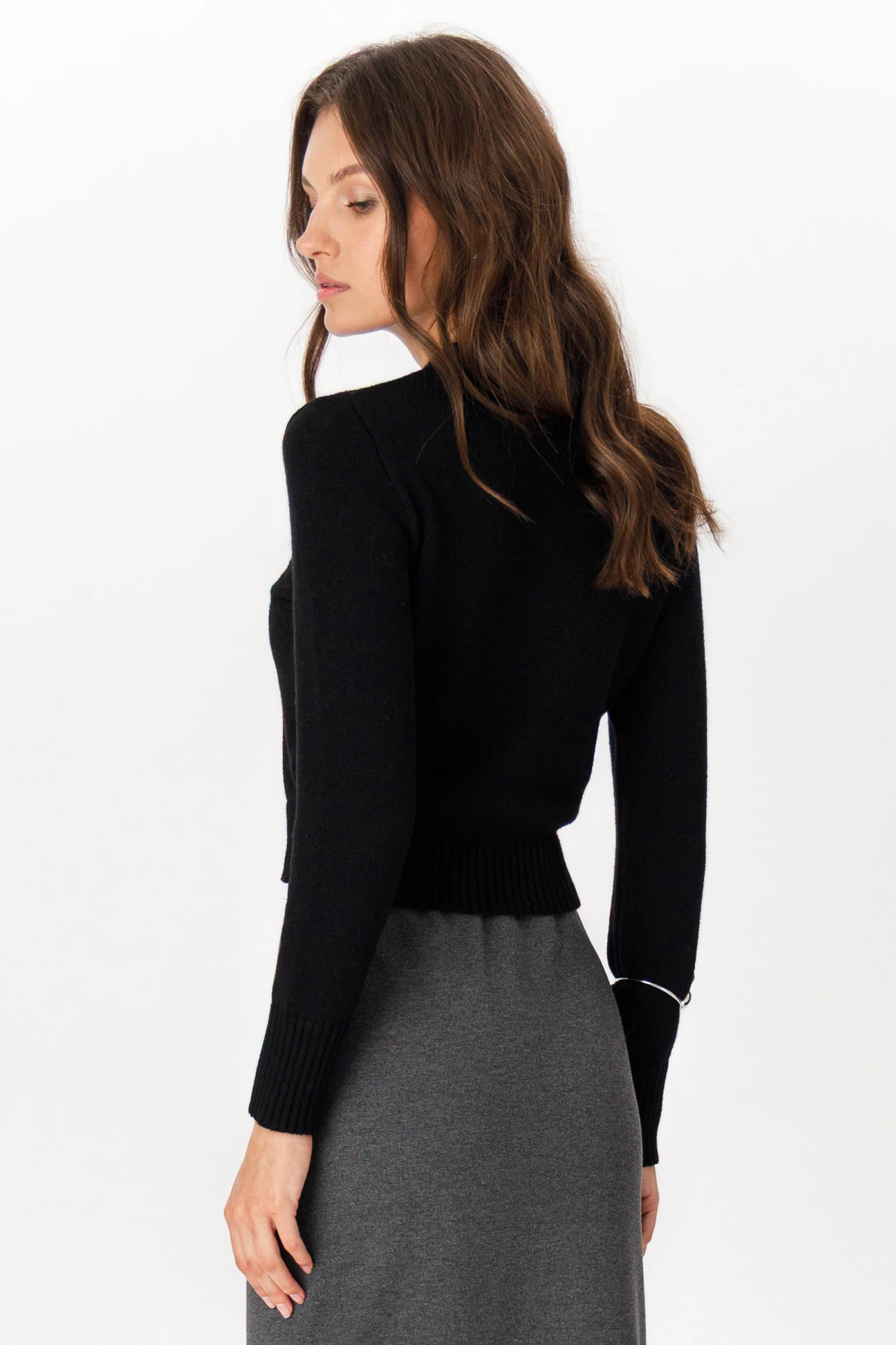 Современный крой: Укороченная длина и ребристые манжеты делают джемпер универсальным для создания модных и стильных образов.