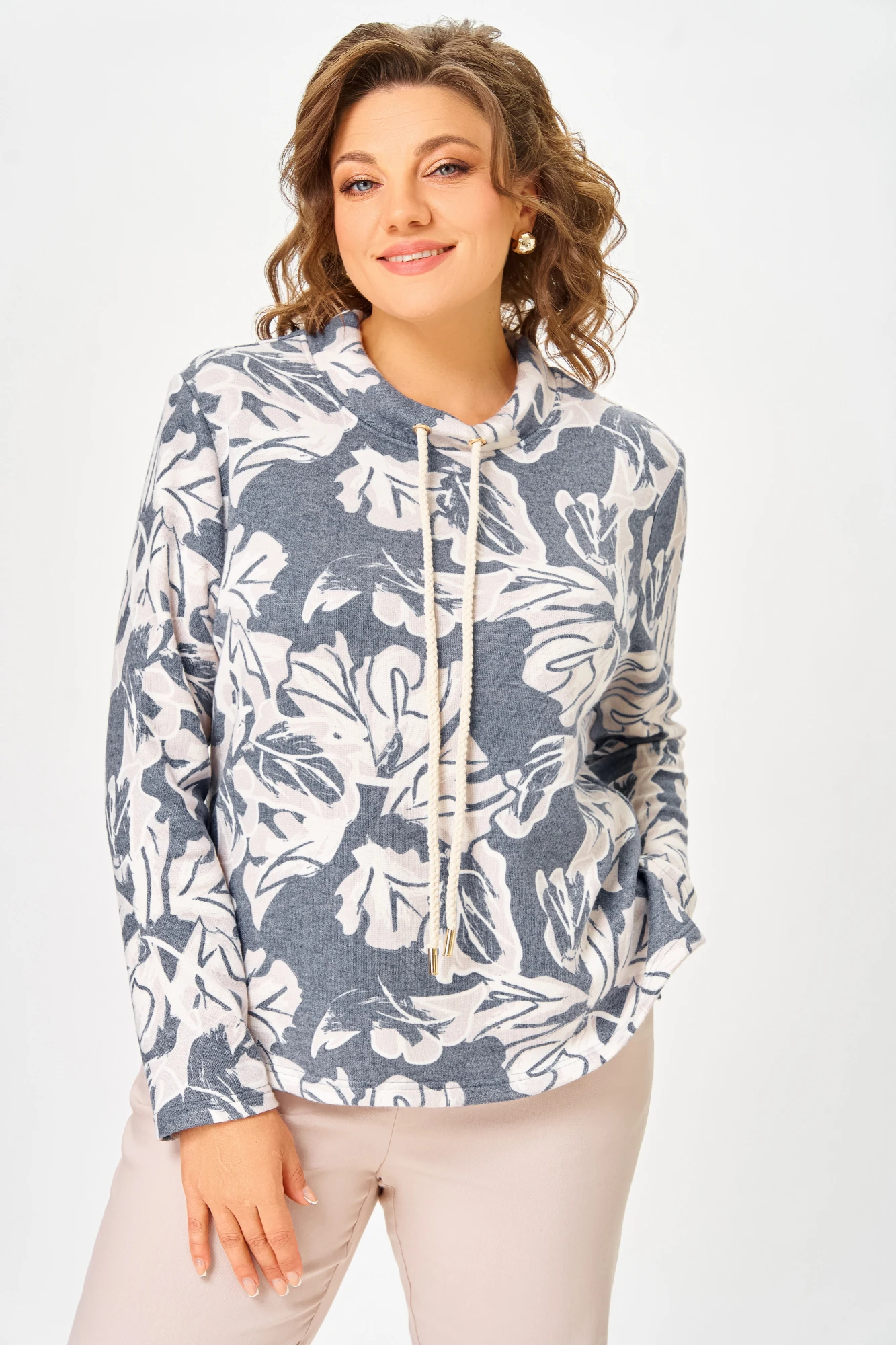 Джемпер (кофта) Swallow 883 Дымчато-синий, принт «бежево-молочные_абстрактные_цветы