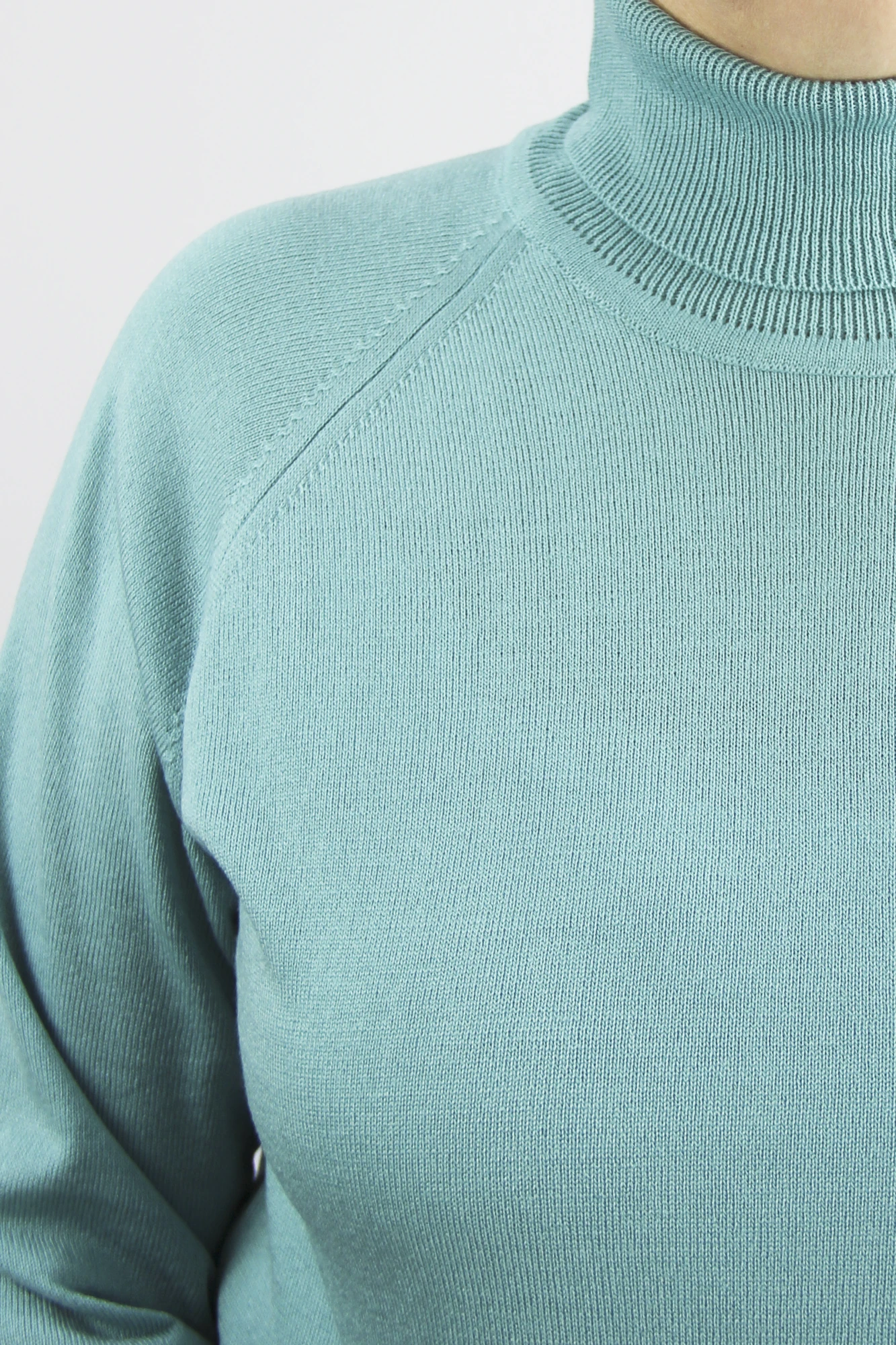 Свитер прямого силуэта, второго слоя одежды, с длинным рукавом реглан. Круглый вырез горловины обработан высоким воротником высотой в готовом виде 16см+-1,0см