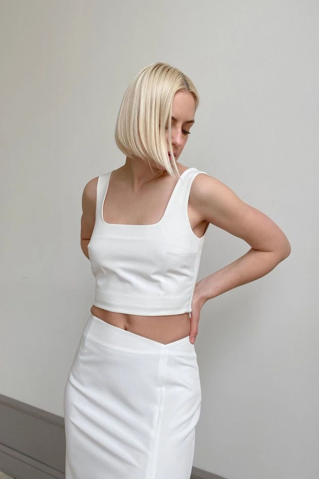 Модель на фото размера XS (42), рост 170 см, размер топа S(44)"
