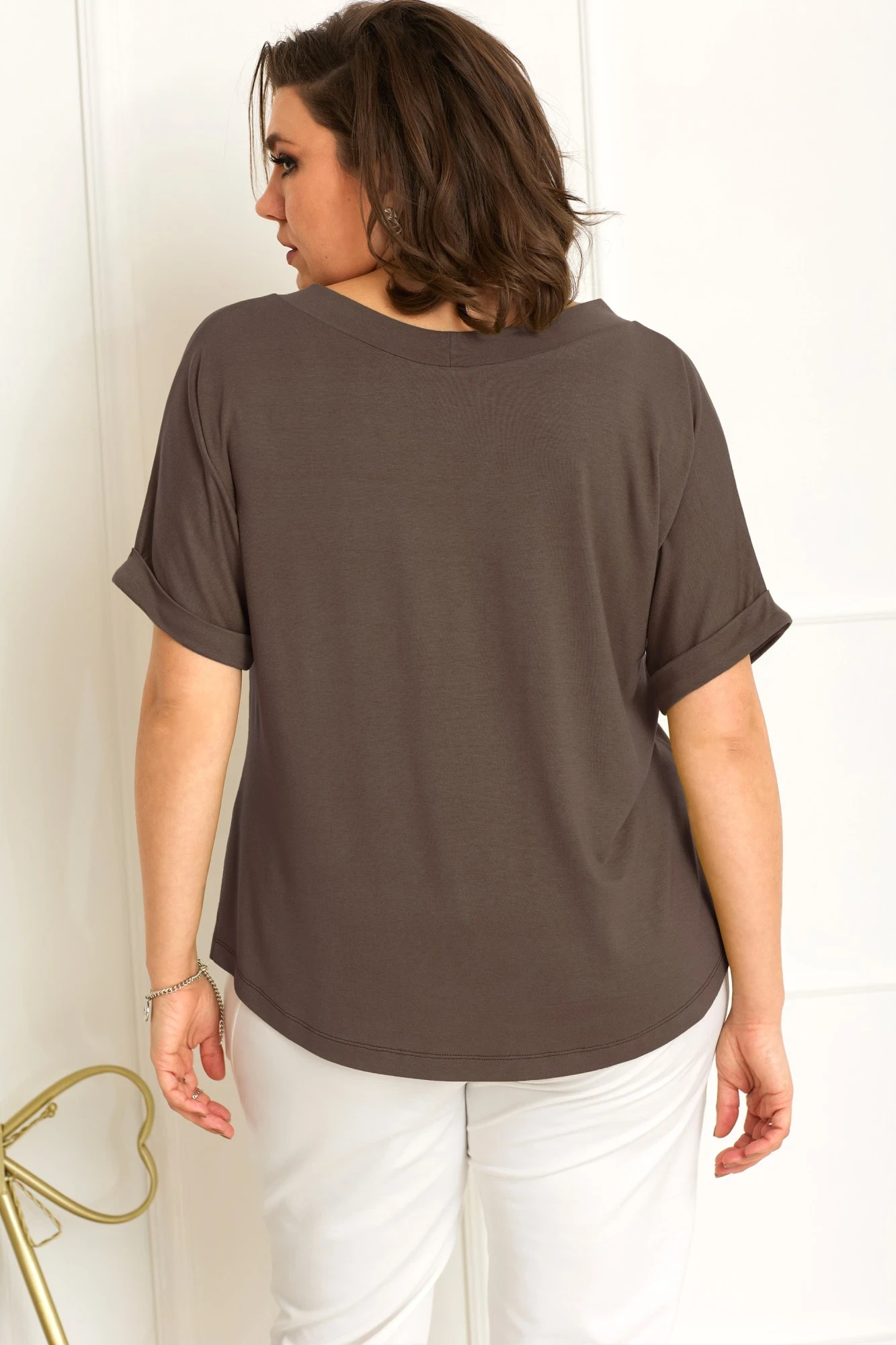 Спинка изделия длиннее полочки и имеет форму полукруга по низу.
