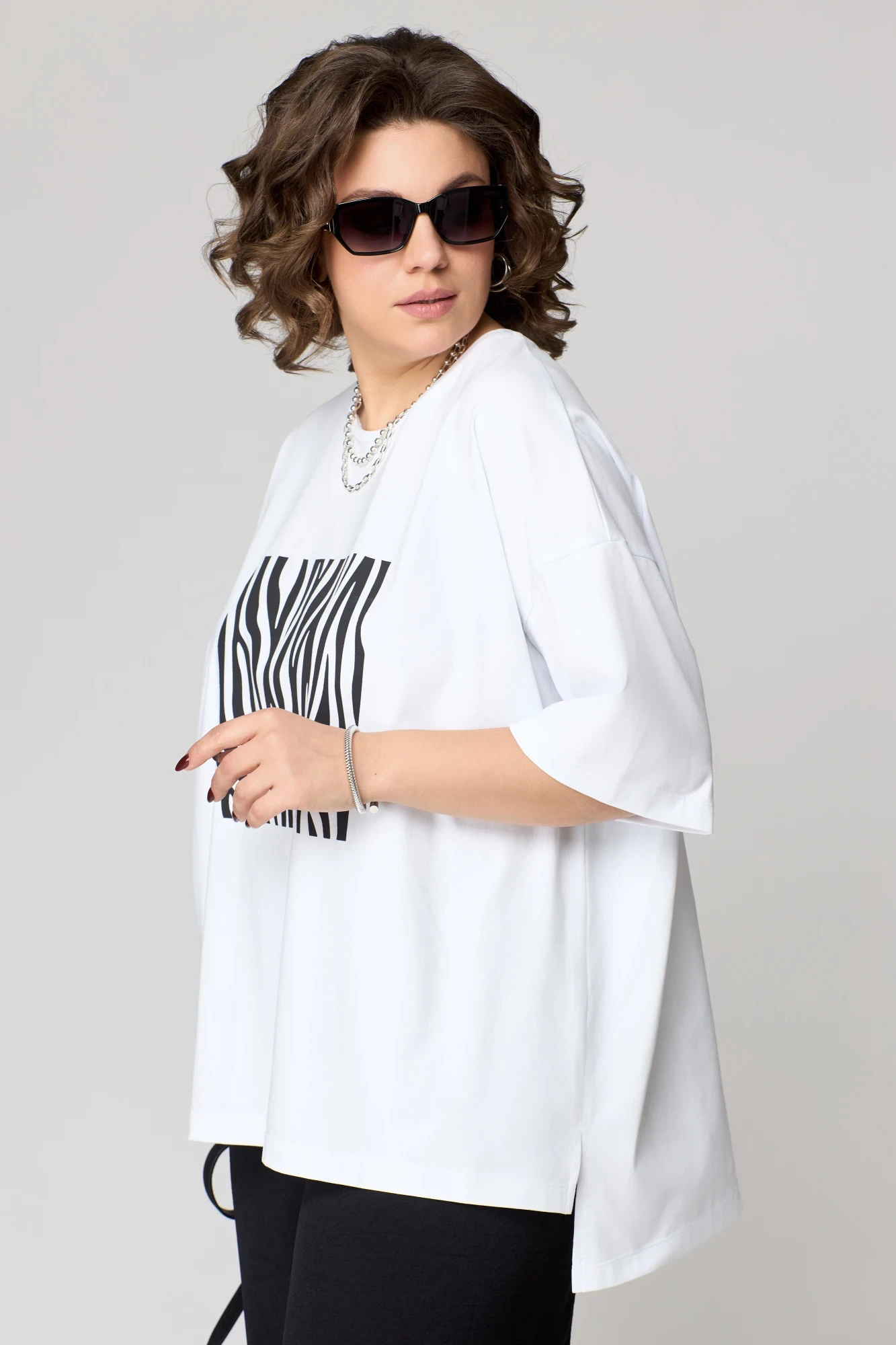 счёт свободного кроя, футболка скроет все недостатки фигуры. Дизайн данной модели