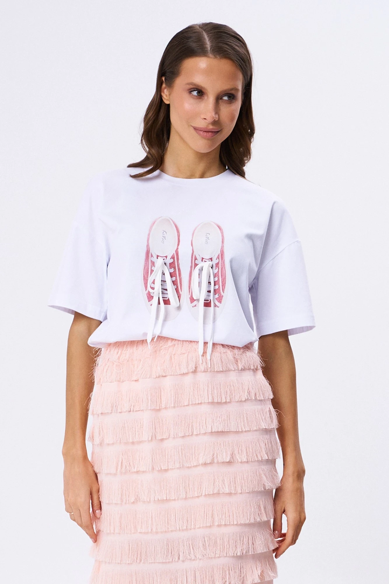 Футболка KaVaRi 4012 белый с коралловым принтом