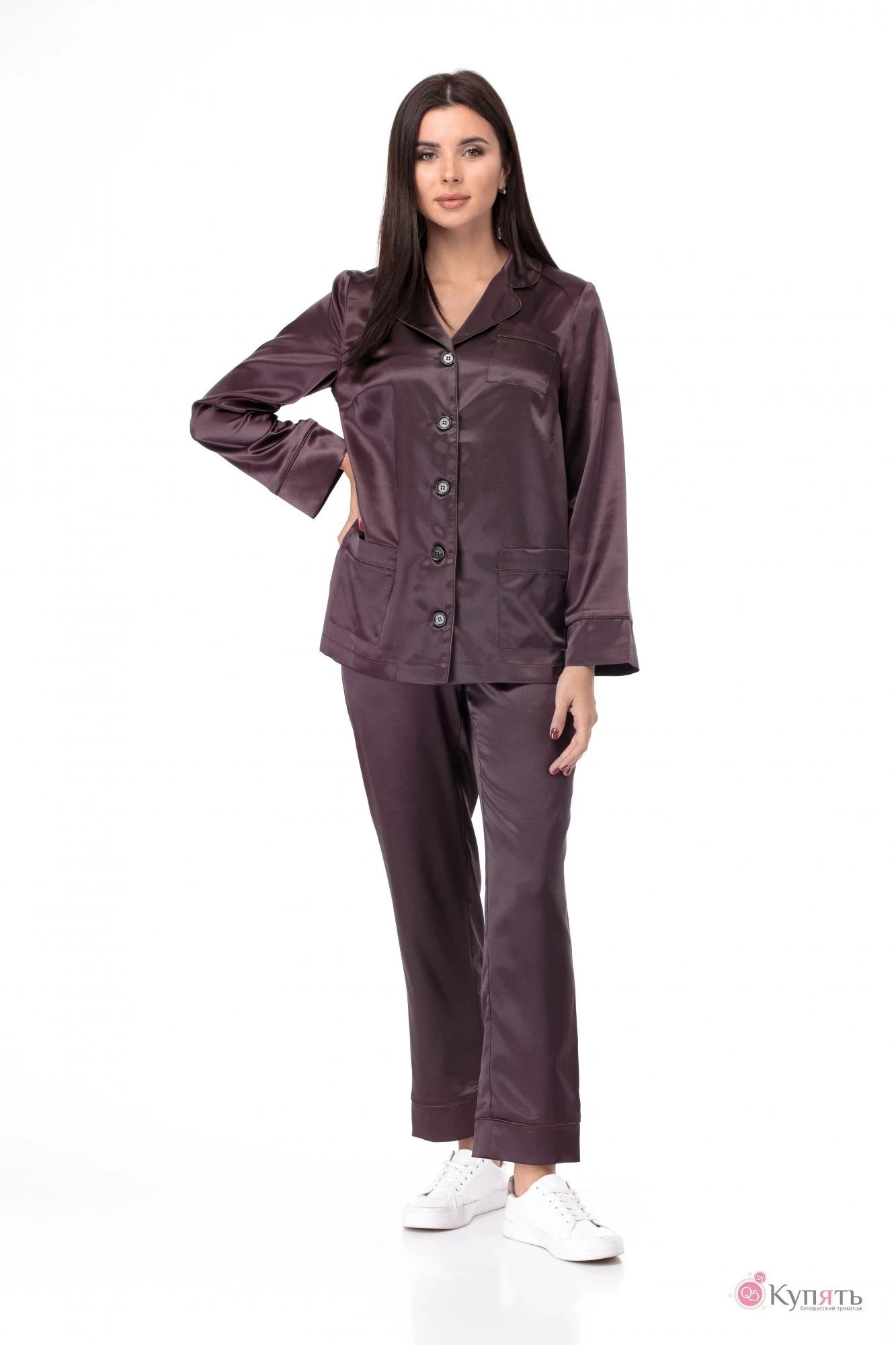 44, 46 ,48,50,52,54Брючный костюм выполнен из нескольких видов ткани: хлопка, сатина, шелка в разных цветовых решениях и призван создать ощущение комфорта и роскоши одновременно.