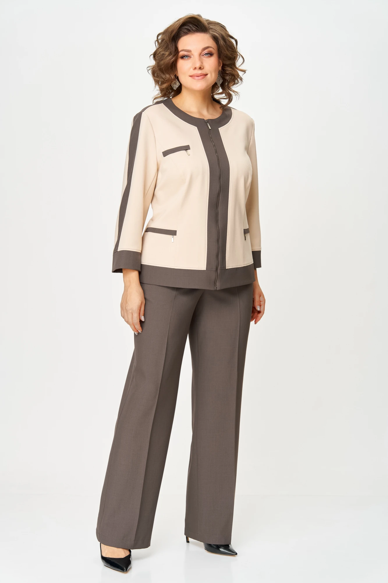 Брючный костюм AIRA style 24232 бежево-коричневый двойка