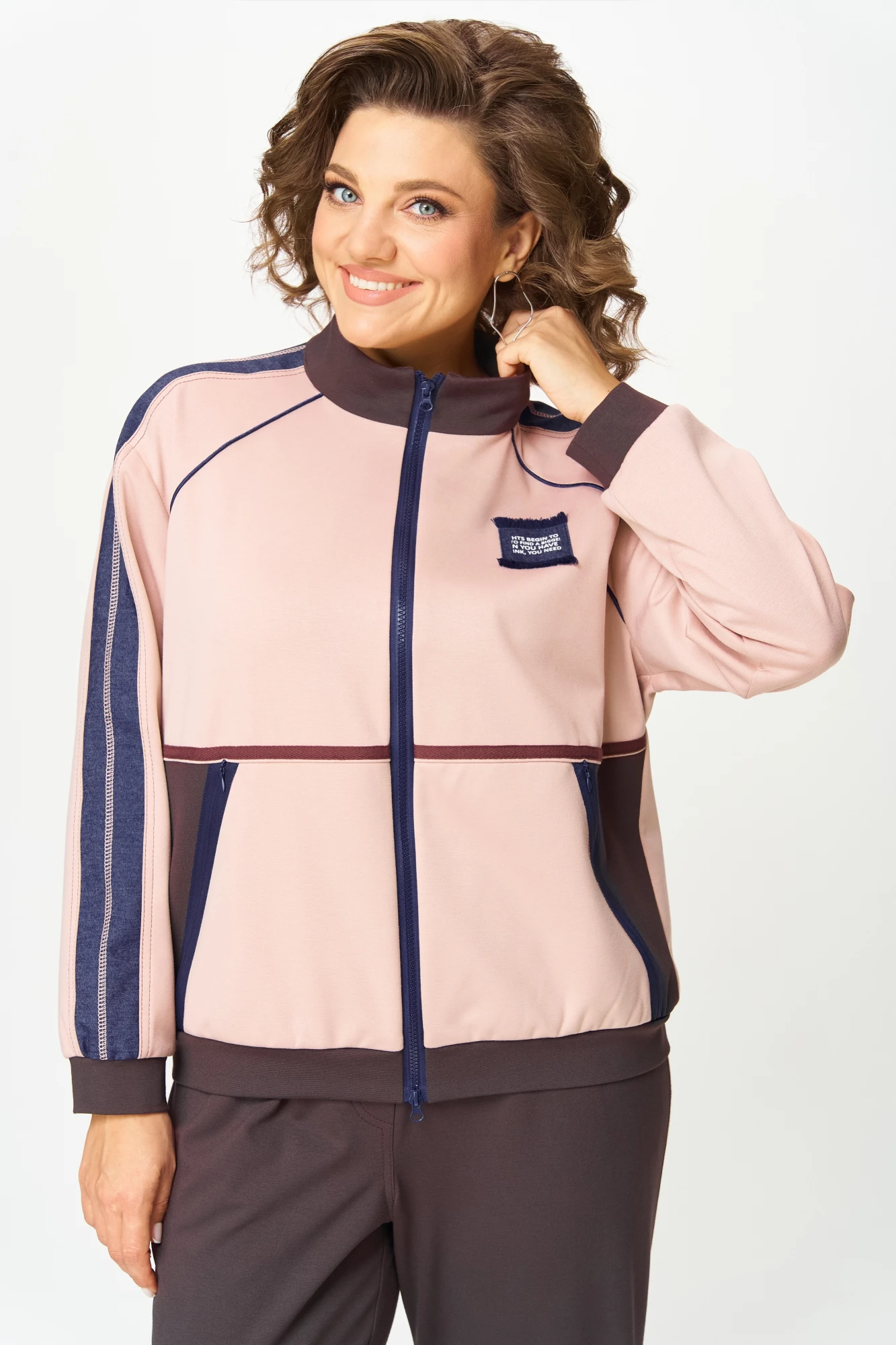 Брючный костюм AIRA style 24241 шоколад+пудра двойка