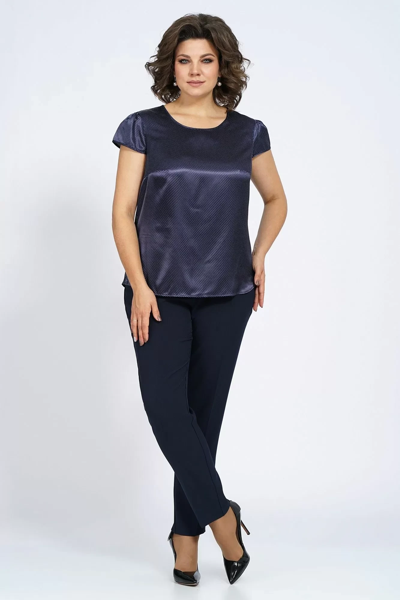 Блуза женская Р46-50 полуприлегающего силуэта, с разрезом виде капельки по центру горловины спинки с застёжкой на навесную петлю и пуговицу, низ фигурной формы. Перед с нагрудными выточками. Рукава втачные, крылышко по окату со сборкой.