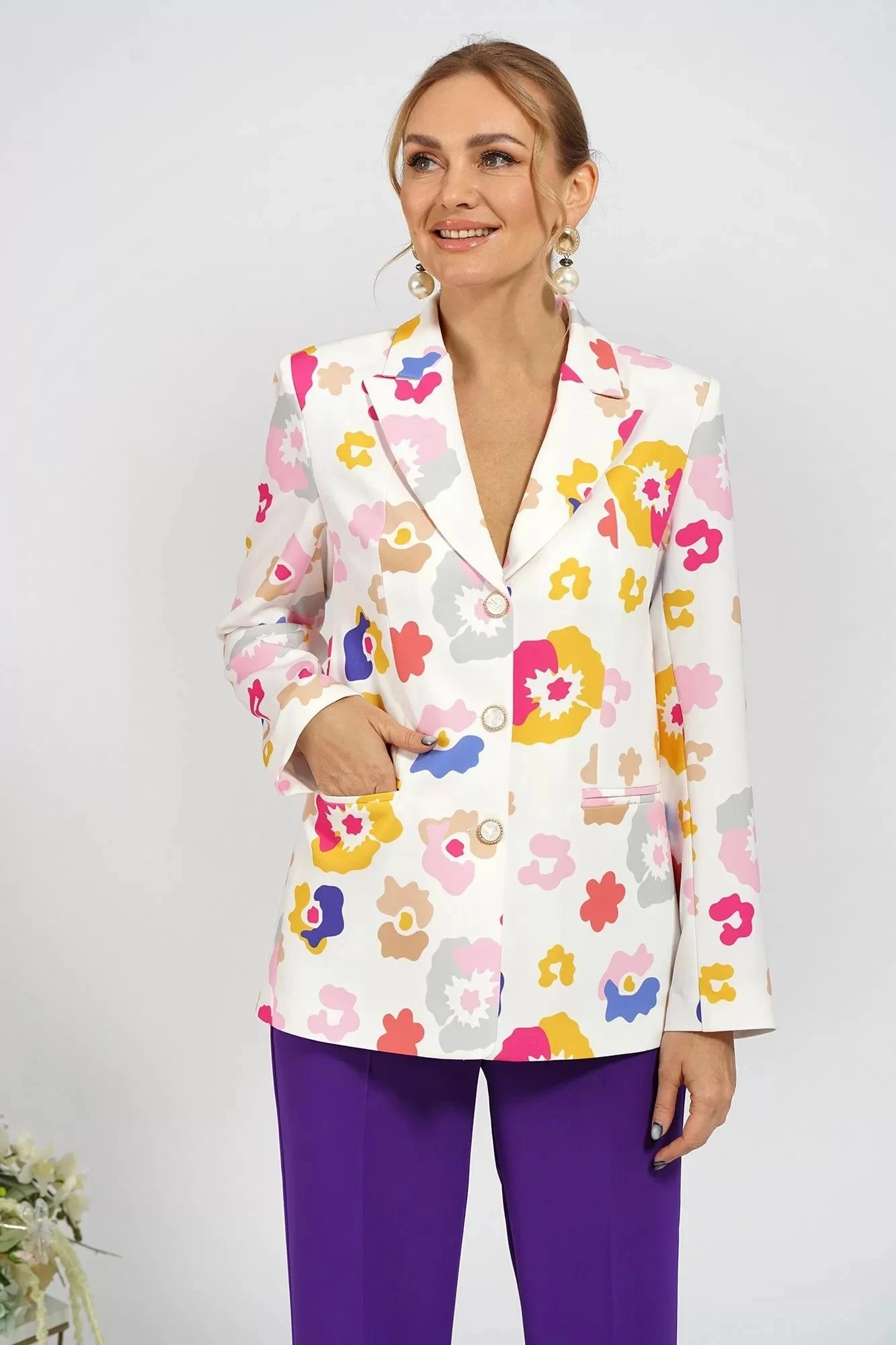 56Жакет полуприлегающего силуэта, перед и спинка на подкладке, с центральной застёжкой на петли, пуговицы.