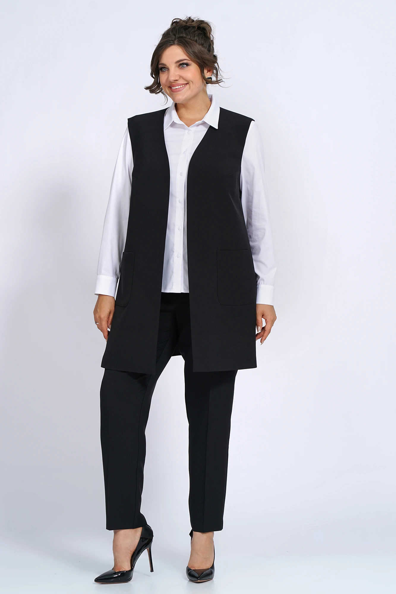 Брючный костюм ALANI COLLECTION 2149.1 черный жилет, брюки, белая блузка тройка