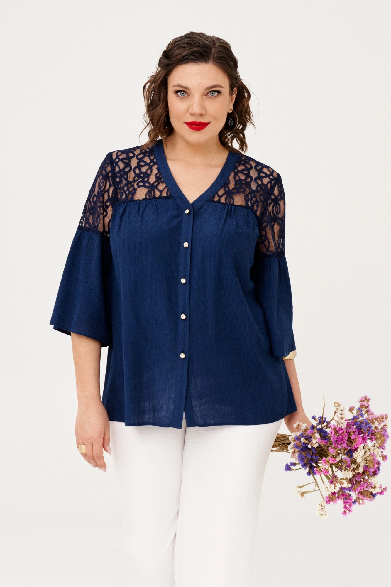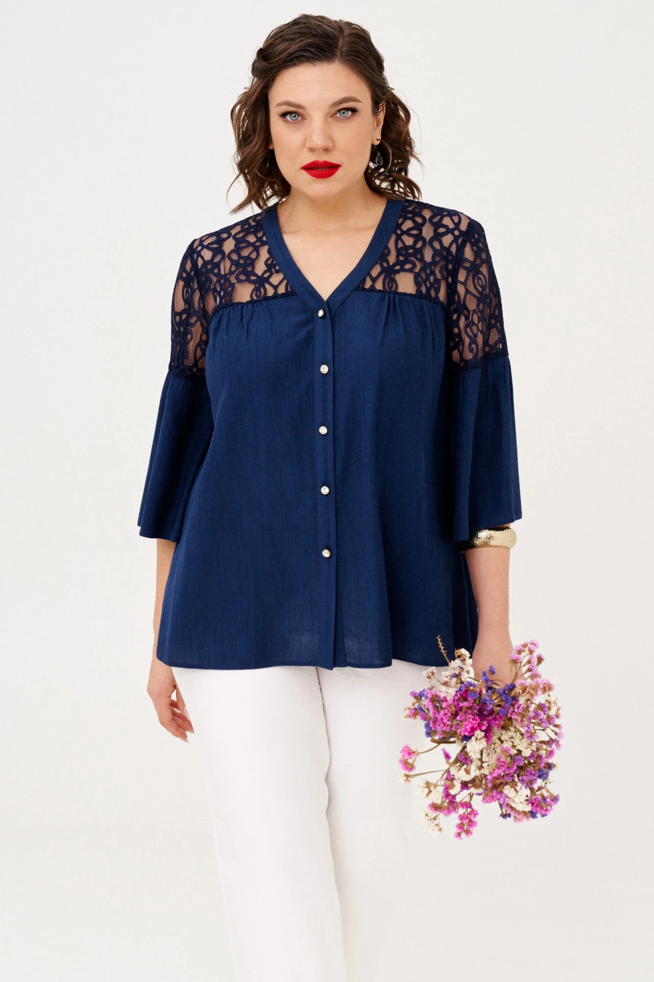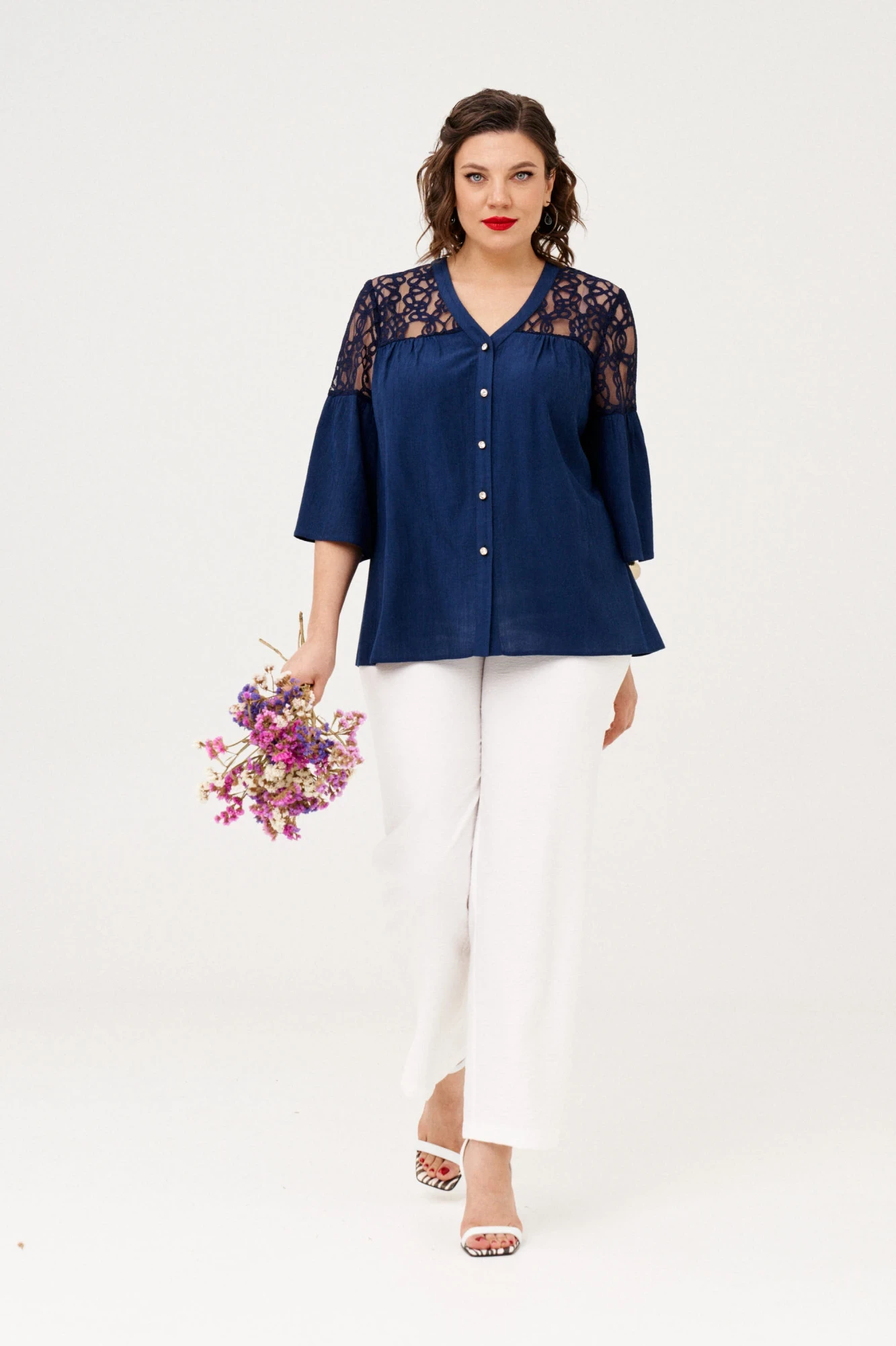 Брючный костюм Almirastyle 356 белый, синий двойка