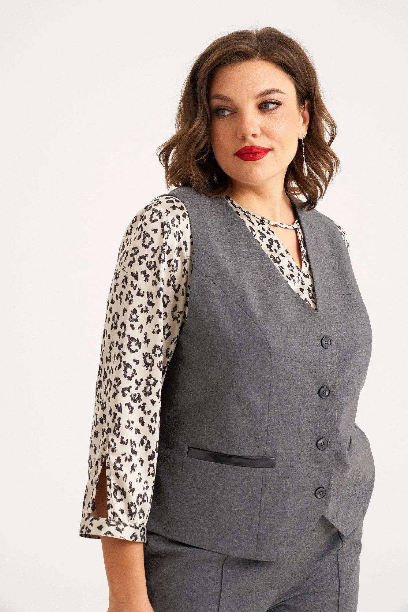 50 размер: жилет ОГ 108 см, ОТ 106 см, ОБ 112 см, длина 55 см, ОТ брюк 86-96 см, ОБ 110 см, длина брюк 104 см. 52 размер: жилет ОГ 112 см, ОТ 110 см, ОБ 116 см, длина 55 см, ОТ брюк 90-100 см, ОБ 114 см, длина брюк 104 см. 54 размер: жилет ОГ 116 см, ОТ 114 см, ОБ 120 см, длина 55 см, ОТ брюк 94-104 см, ОБ 118 см, длина брюк 104 см.