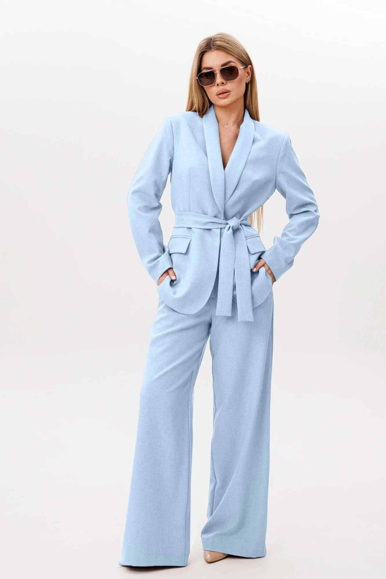 Брючный костюм AmberaStyle 2041-3 голубой двойка