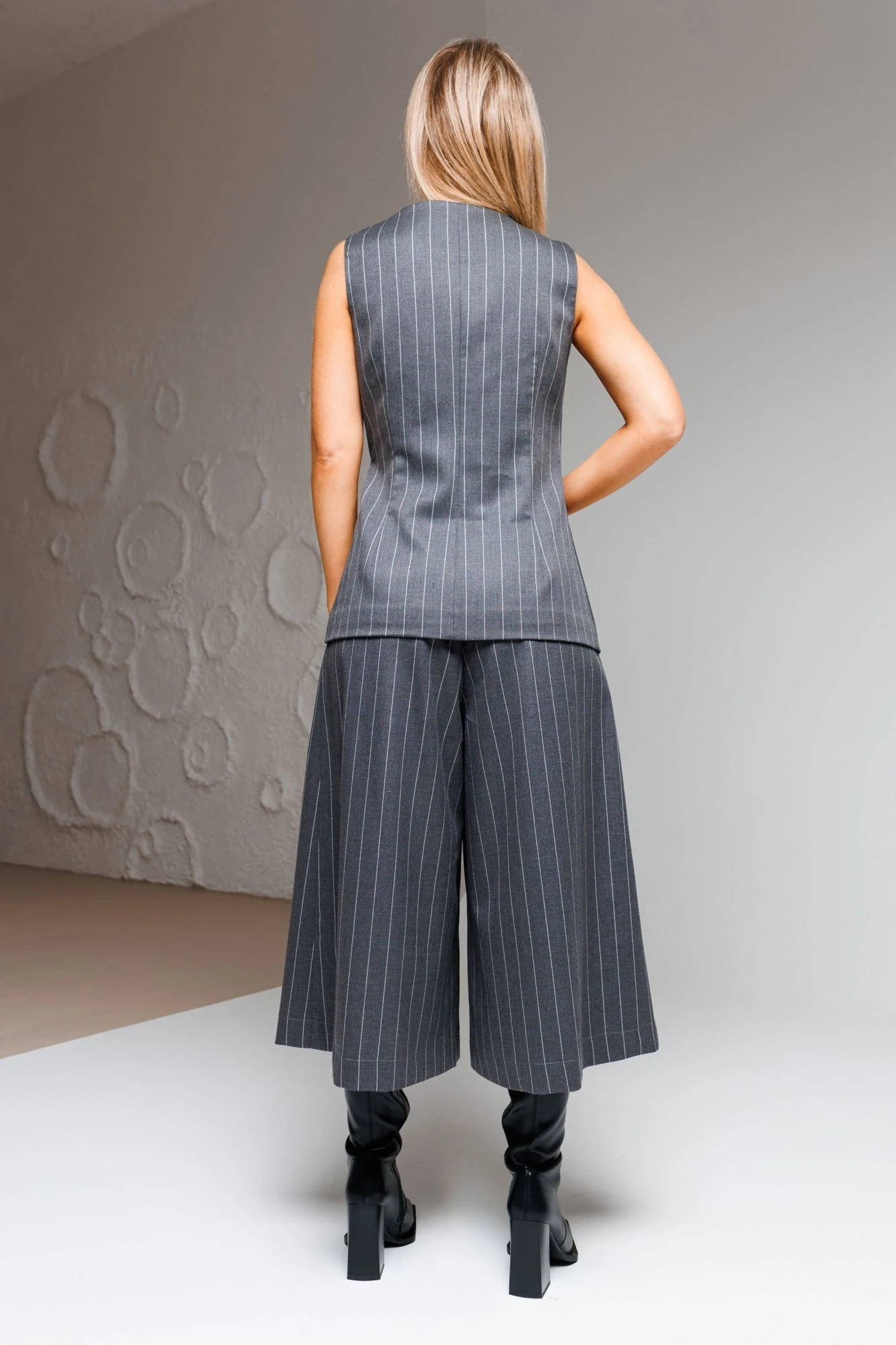 Брючный костюм AmberaStyle 2052 СЕРЫЙ полоска двойка