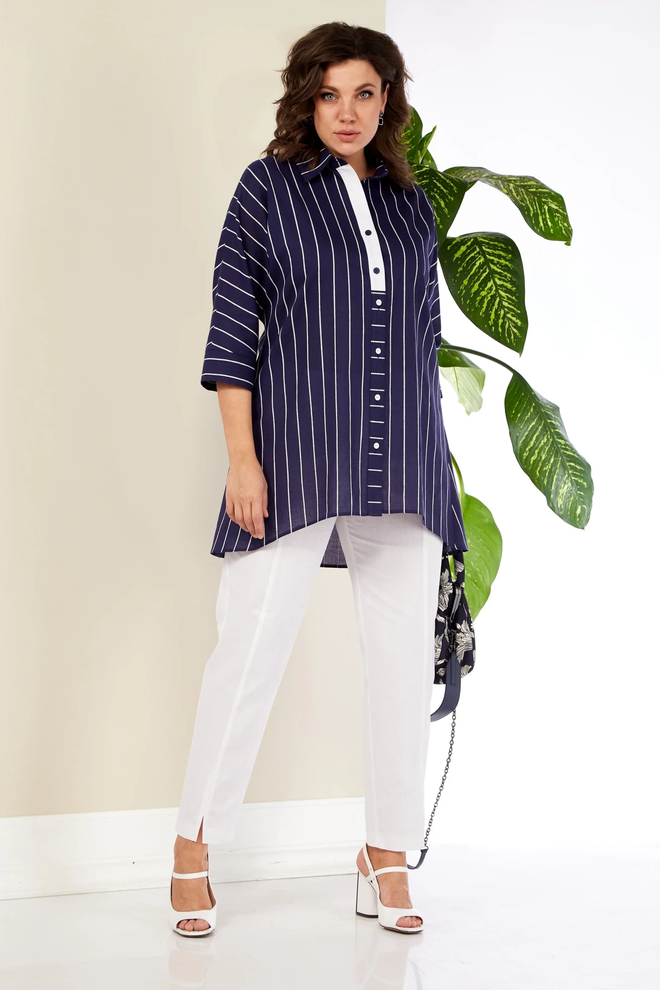 Брючный костюм Anastasia 1003 белый, синий двойка