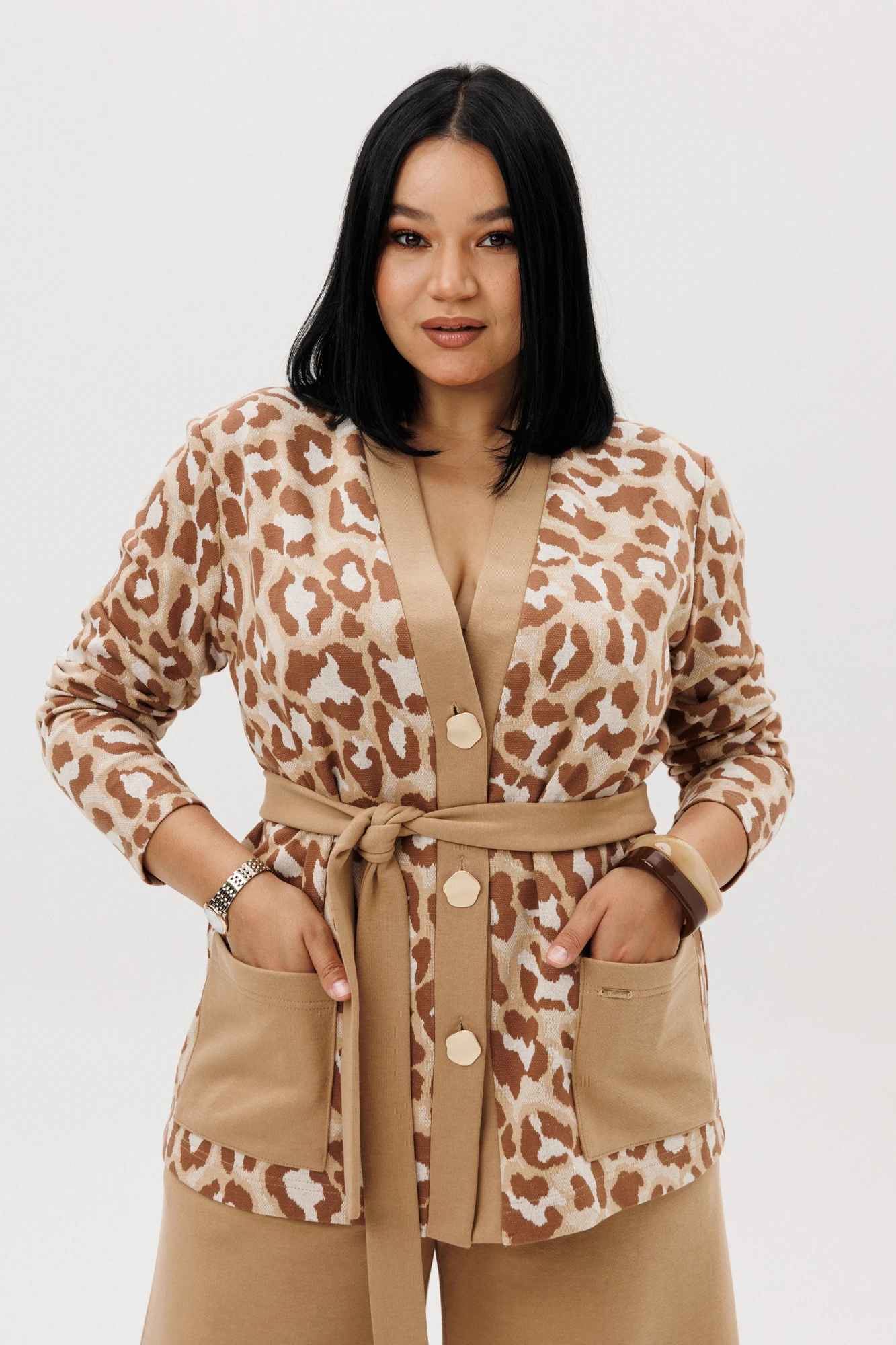 Брючный костюм Anastasia 1292 бежевый (анималистический принт) двойка