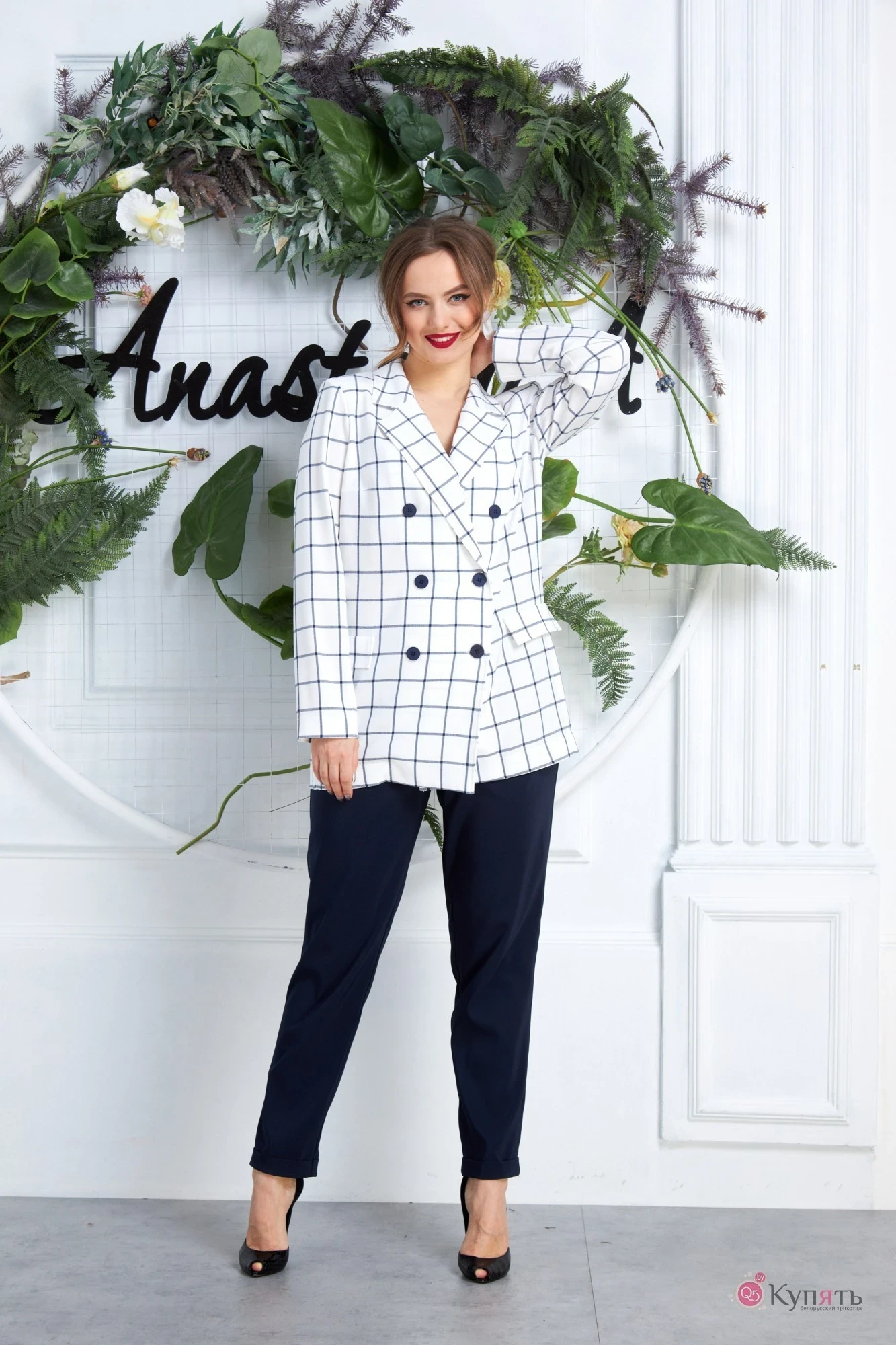 Брючный костюм Anastasia 577 молочно-синий