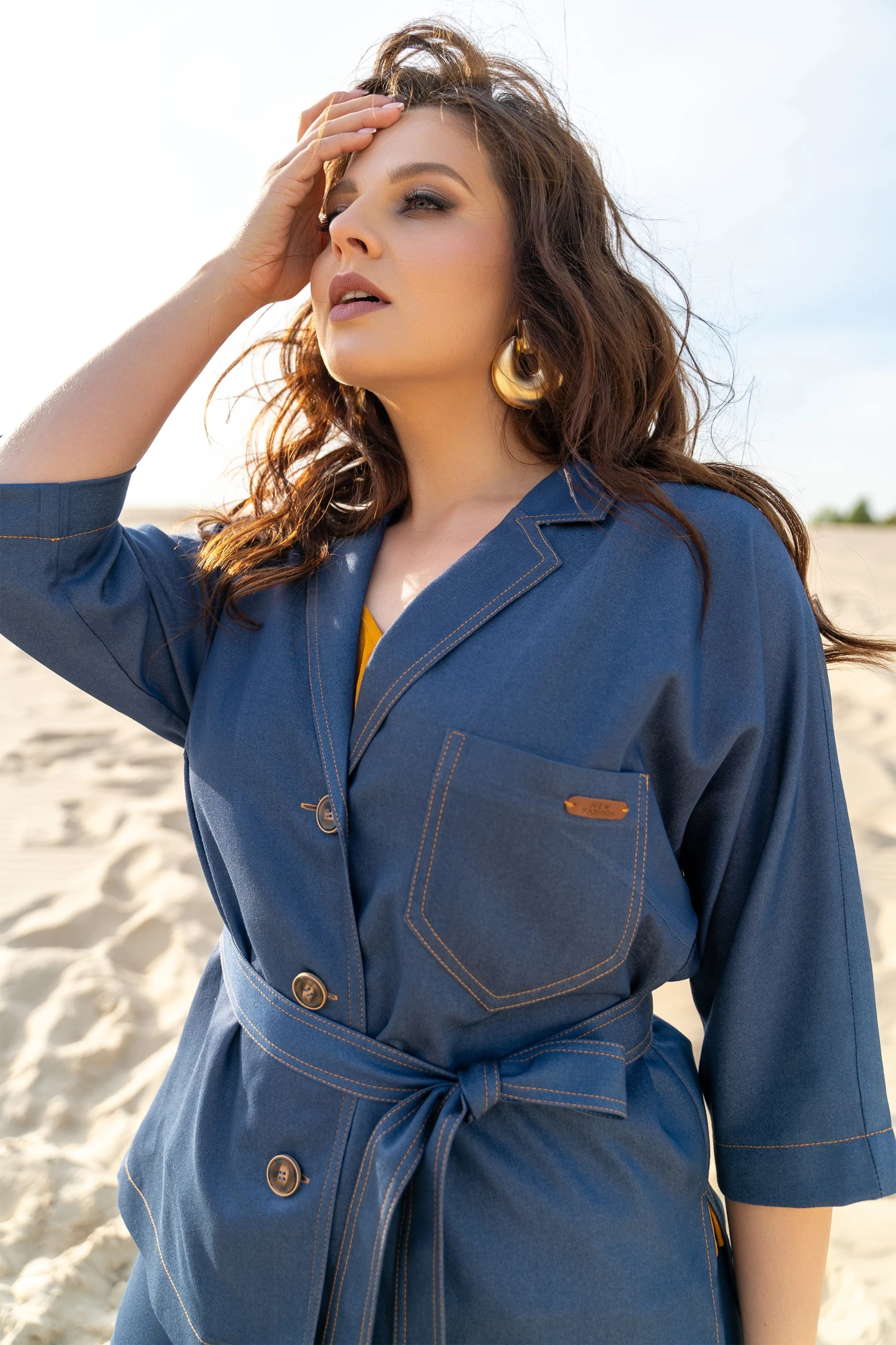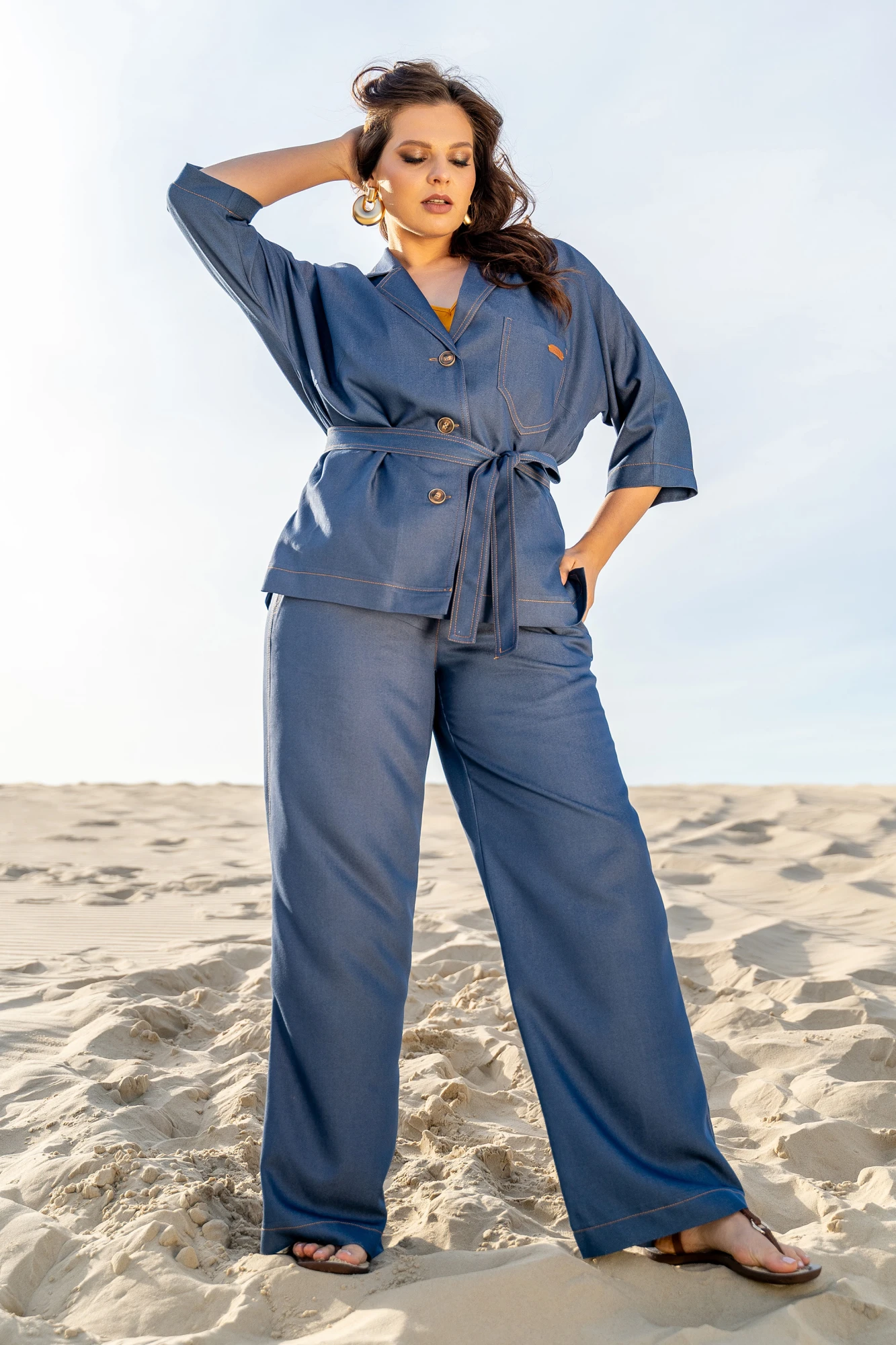 Брючный костюм ANDINA 3003 деним/шафран тройка