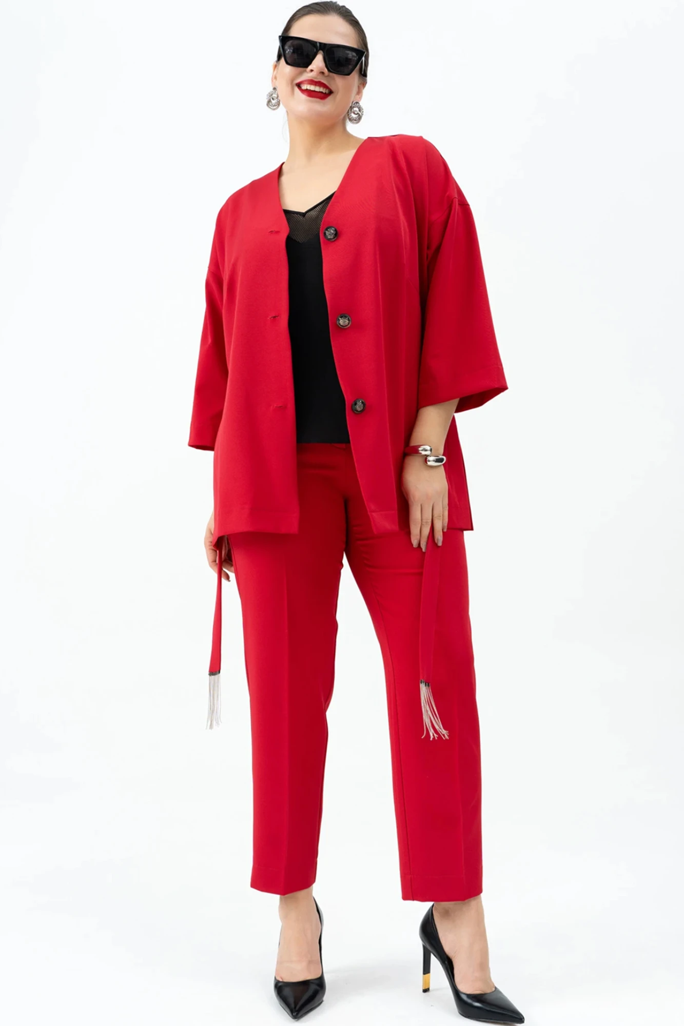 Брючный костюм ANDINA 3005 малина/черный тройка
