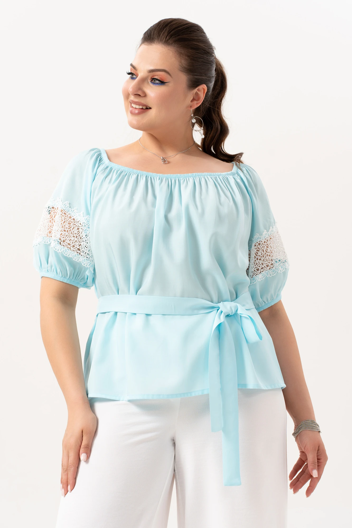 Брючный костюм ANDINA 982 небесно-голубой-молоко двойка