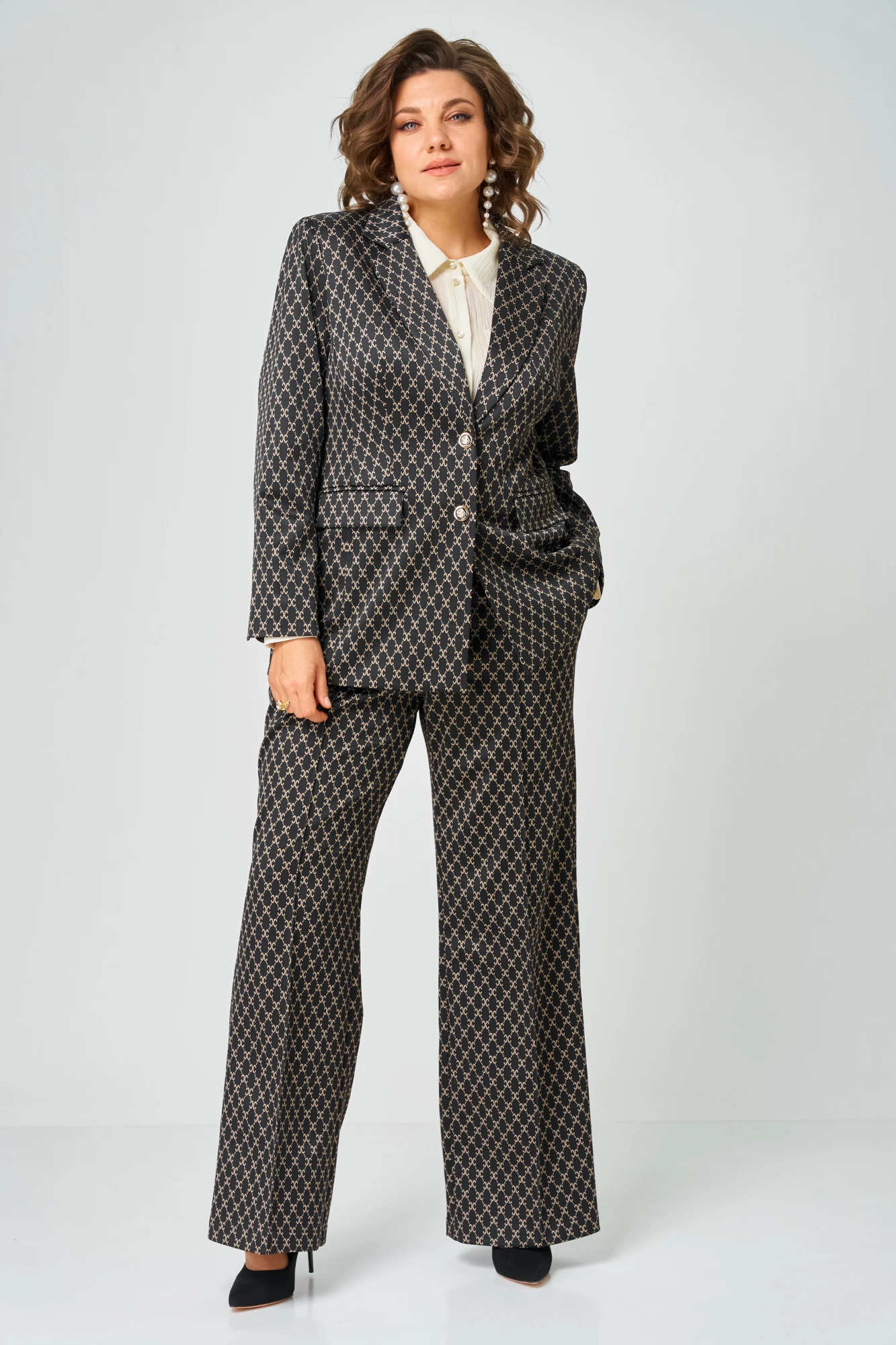 Брючный костюм ANDINA CITY 9085-26 чёрный_с_бежевым двойка