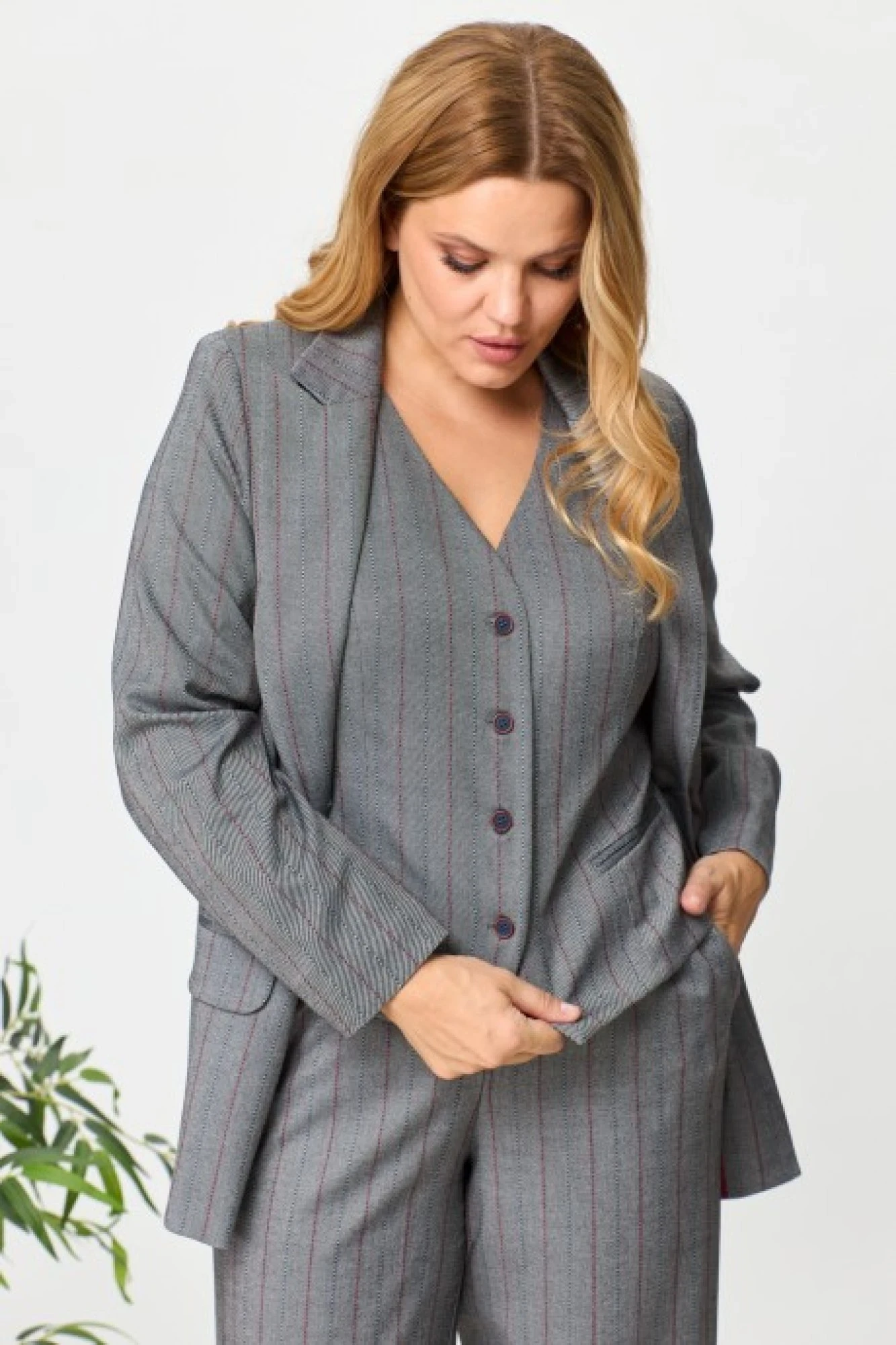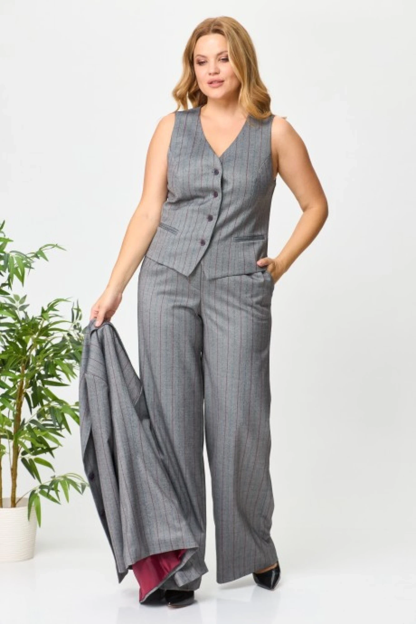 Этот костюм - это шик и универсальность. Жакет бойфренда сочетает в себе элегантность и комфорт, прямые брюки придают вам стройность и уверенность, а жилет завершает образ, добавляя нотку роскоши. Все это - актуальная классика, которая никогда не выйдет из моды.