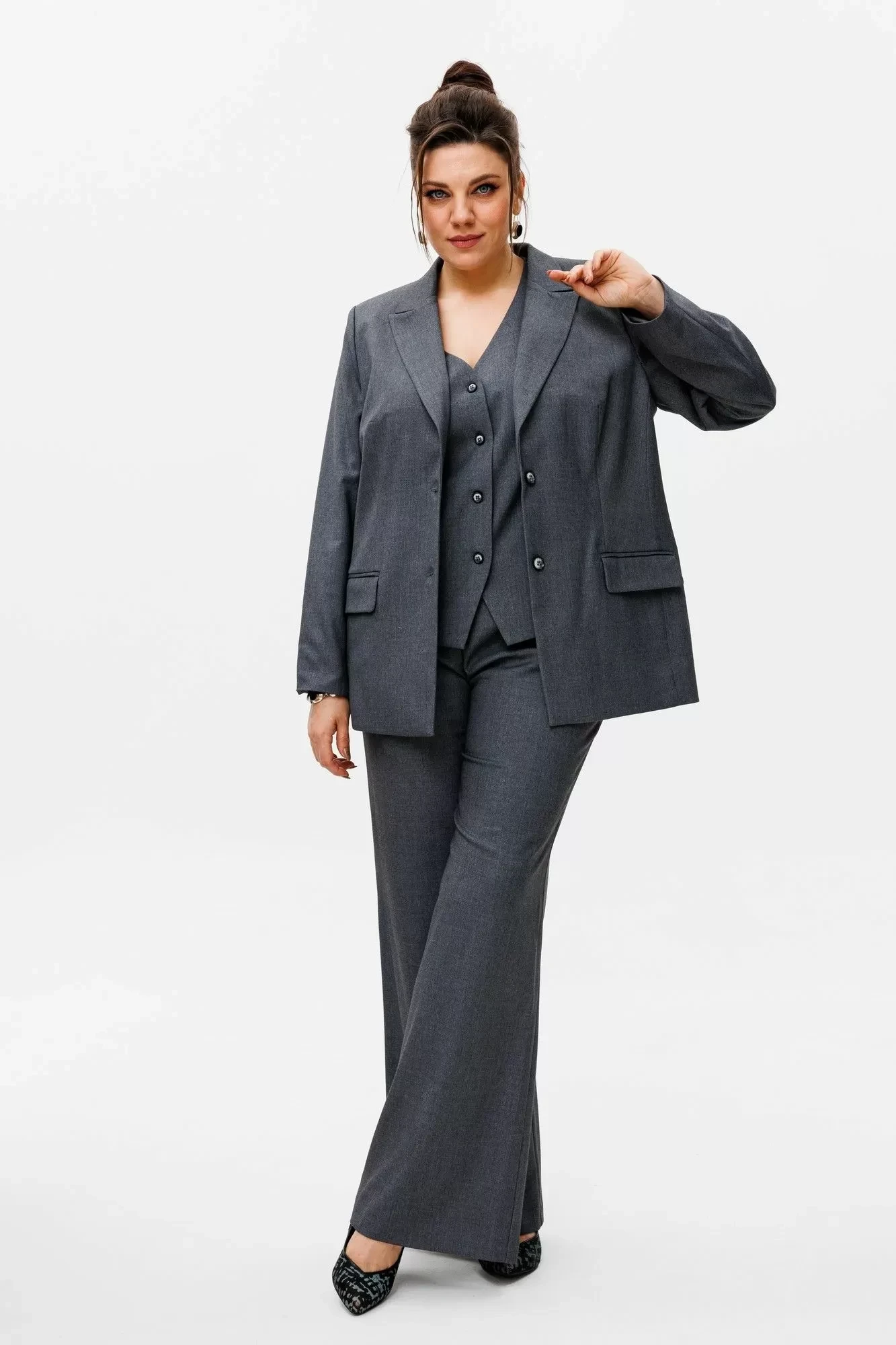 50, 52 ,54,56, 58 , 60Этот костюм - это шик и универсальность. Жакет бойфренда сочетает в себе элегантность и комфорт, прямые брюки придают вам стройность и уверенность, а жилет завершает образ, добавляя нотку роскоши, брюки на резинке. Все это - актуальная классика, которая никогда не выйдет из моды.