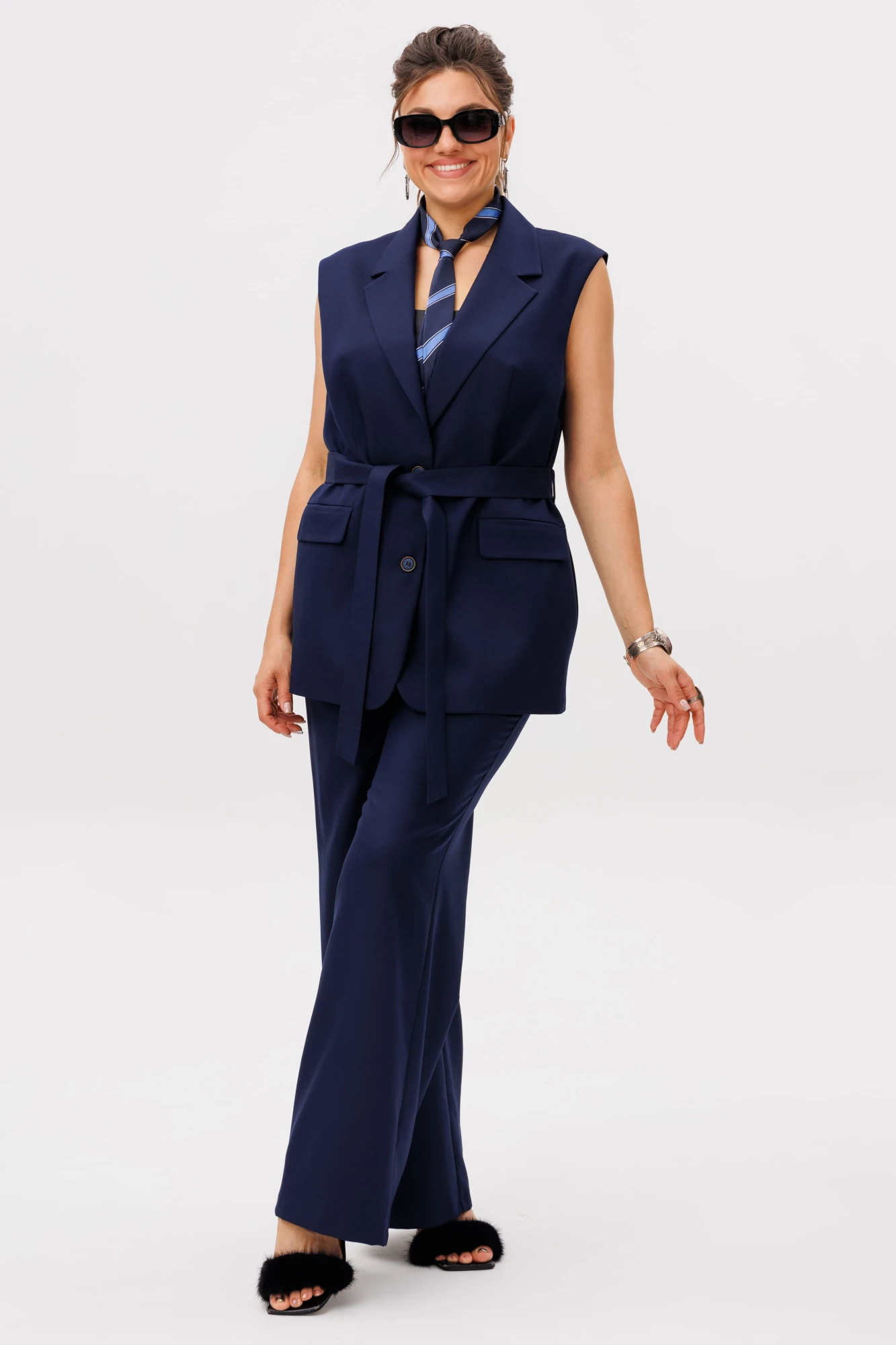 Прорезные карманы с клапанами не только делают жилет функциональным, но и подчеркивают его безупречный крой. Удлиненный пояс, плавно перетекающий в линию низа, визуально вытягивает силуэт, придавая ему еще больше элегантности.