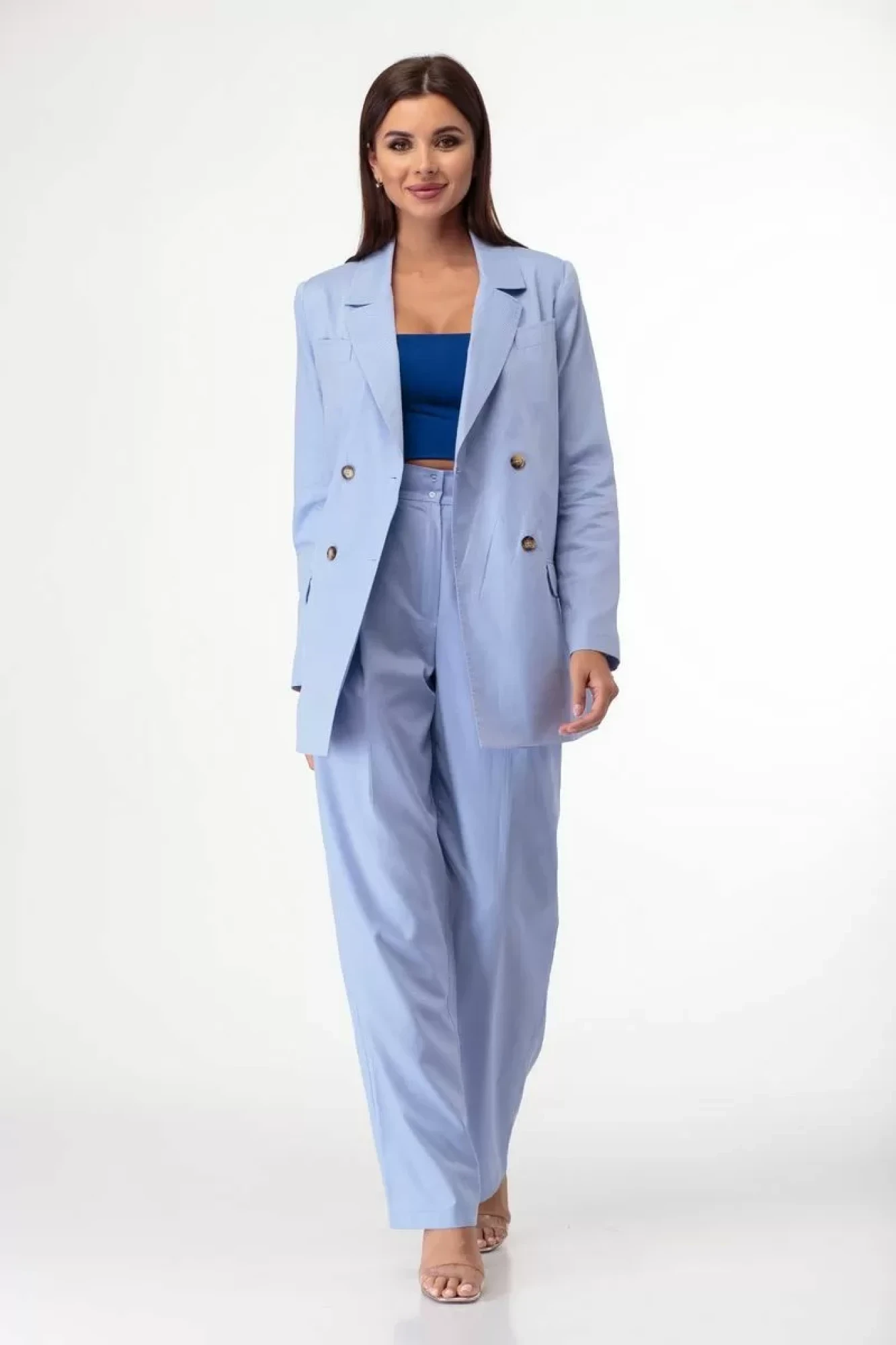 При съемке для образа использован топ без бретелей Anelli Style – 767 васильковых и бордовых оттенков.