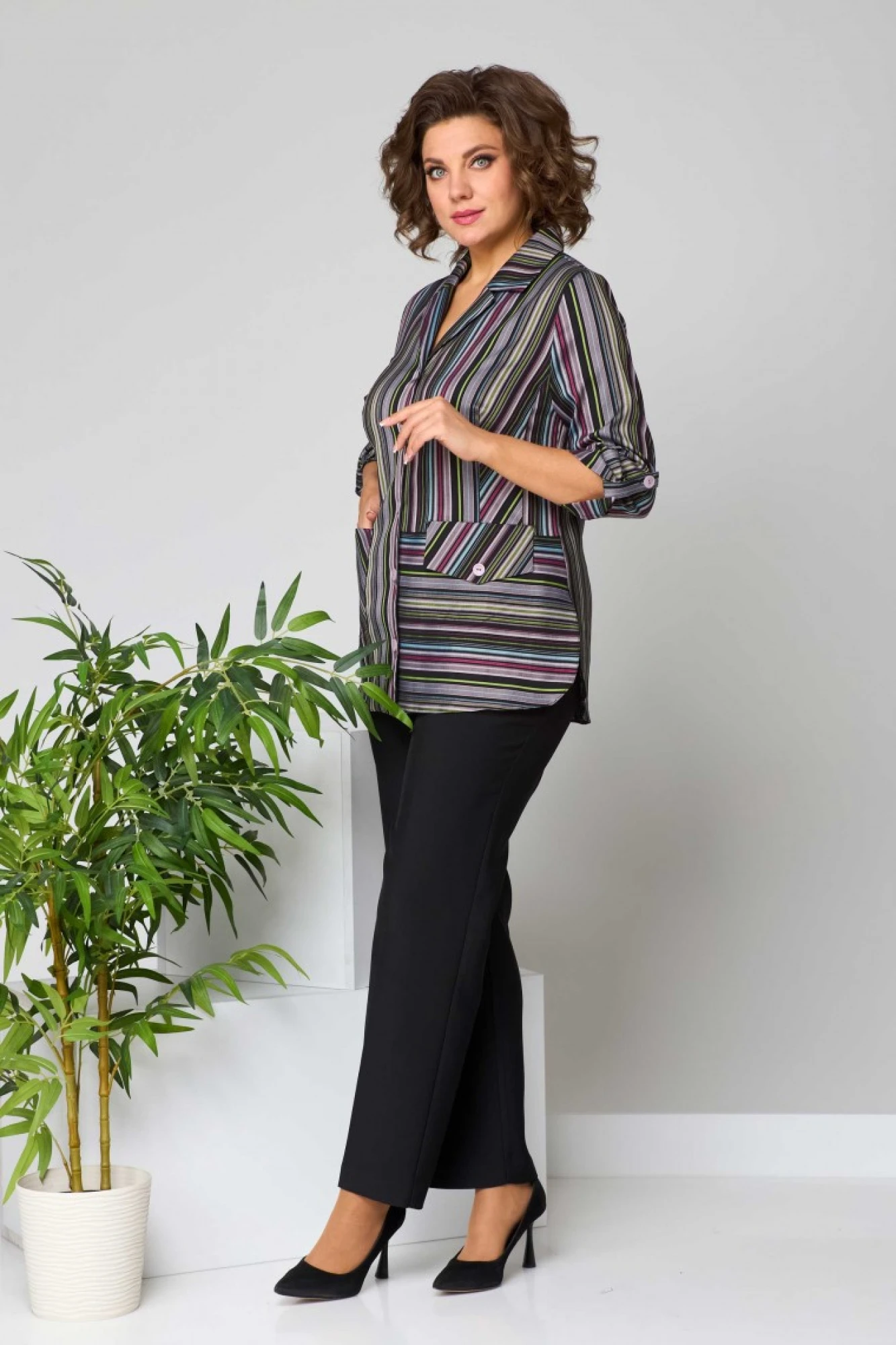 Брючный костюм Асолия 1504 мультиколор полоска, черный