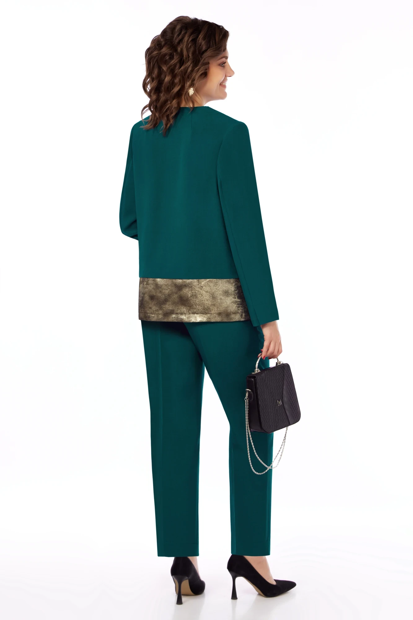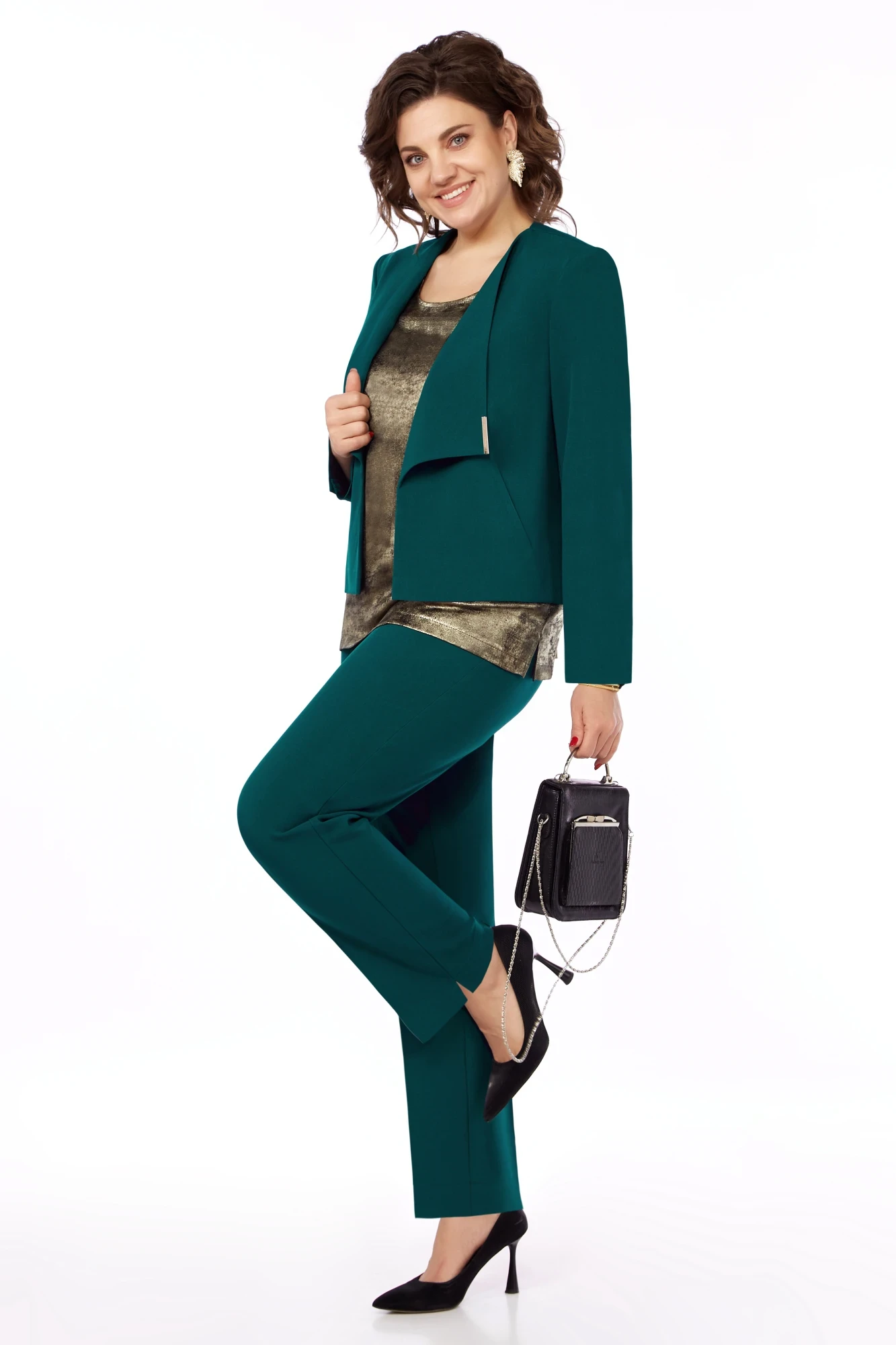 Жакет прямого силуэта укороченный без застёжки .По переду рельефы от горловины до низа,в швах карманы.Цельнокроеные отложные лацканы с декоративными зажимами на концах.Перед на подкладке.Спинка цельная с плечевыми вытачками.Рукава втачные двухшовные,со шлицей по низу локтевого шва .
