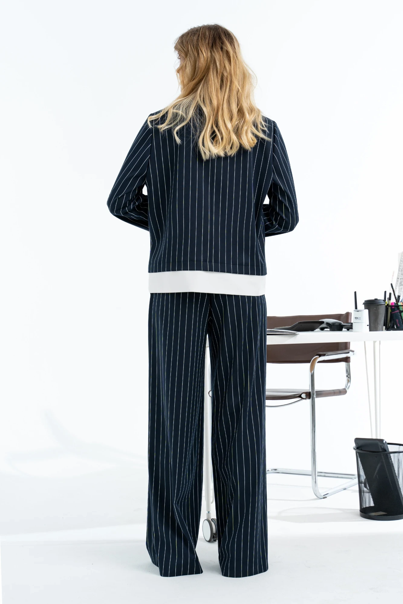 Брючный костюм Barti 24-23 Сине-белый двойка