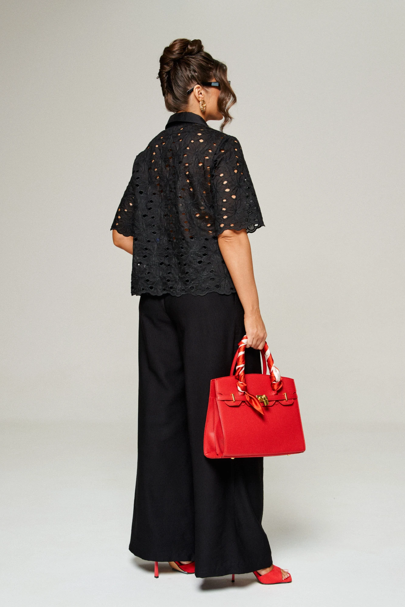 Комплект с широкими брюками «палаццо» идеально подойдет для создания лаконичных офисных