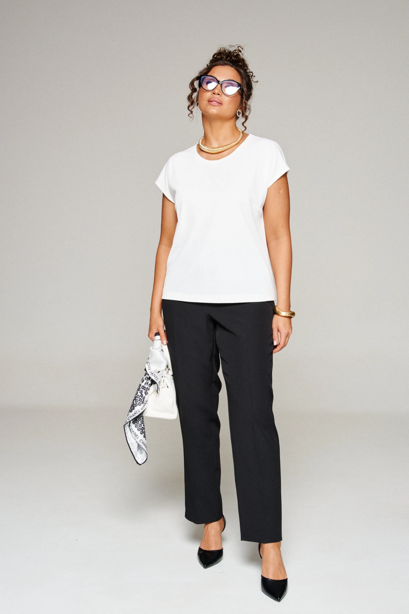 Брюки классические, укороченные; слегка зауженные к низу; с высокой посадкой и боковыми карманами в верхней части переда.