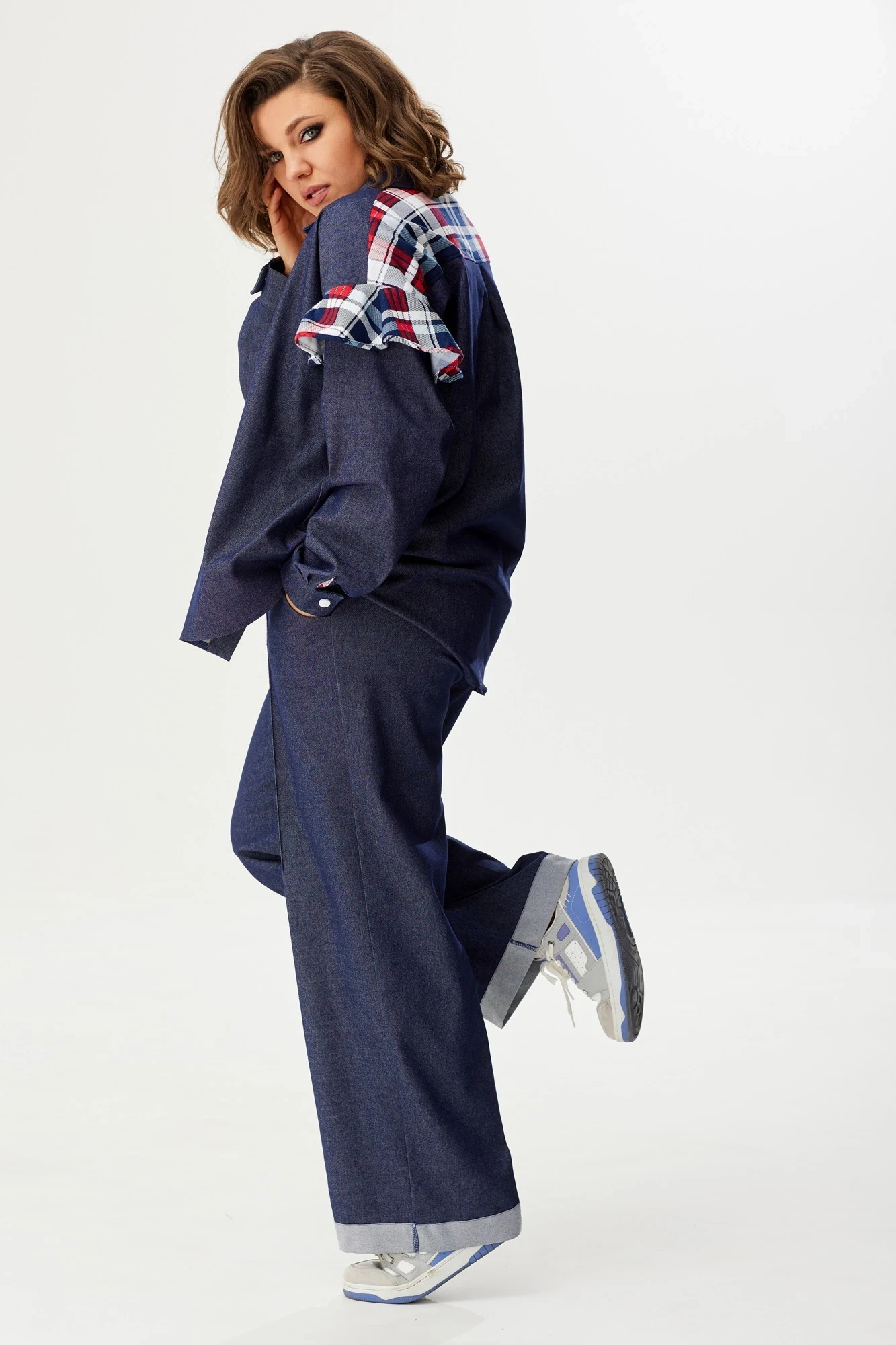 Брюки палаццо – настоящий тренд этого сезона. Главная особенность в том, что они делают ножки визуально длиннее. По передней части застрочены стрелки необычным образом. Имеющие разный уровень и направление до линии колена.
