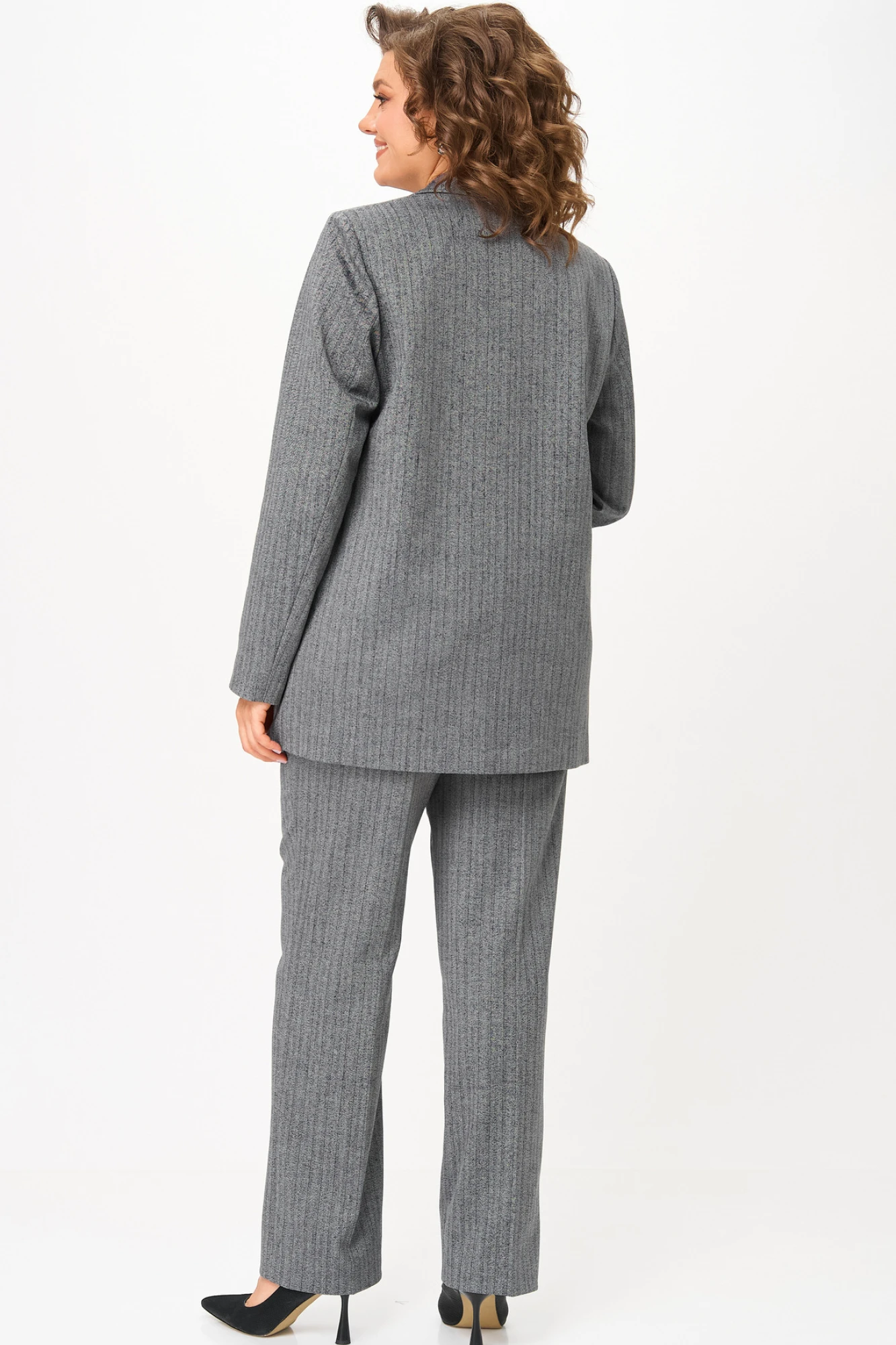 Брючный костюм БелЭльСтиль 762+609 елочка серая двойка