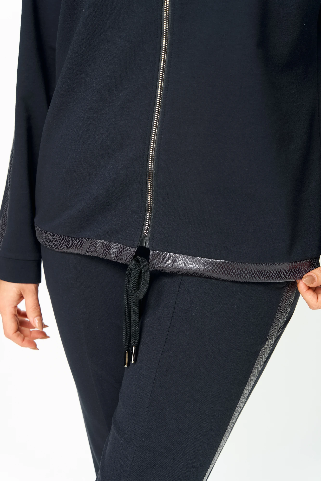 Блузон полуприлегающего силуэта с центральной застежкой на тесьму молнию, с левой стороны на уровне груди фигурный накладной карман с пришивной нашивкой. Горловина оформлена планкой из отделочной ткани. Рукава втачные с отделочным лампасом по центру, низ рукава на манжете из основной ткани. По низу блузона притачная планка с декоративным шнуром.