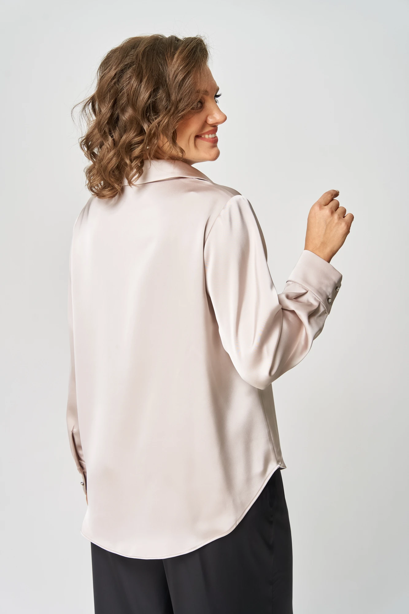 Роскошная двойка состоит из невероятно оригинальной блузки и брюк - палаццо. Наша блузка свободного силуэта средней длины, дополнена планкой по переду. Рукава втачные с естественным положением плеча на манжете. Горловина обработана рубашечным воротником. Пикантно смотрятся на блузке декоративные передние воланы-завязки, придавая образу игривость и кокетливость.