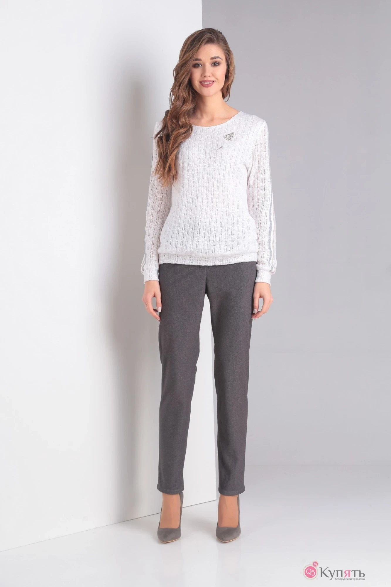 Комплект брючный-Брюки из мягкой мягко-растяжимой ткани, с боковыми карманами на притачном поясе. Блузон из ажурного трикотажа на трикотажной подкладке с лампасами по рукаву и плечу. Рукав втачной на манжете.