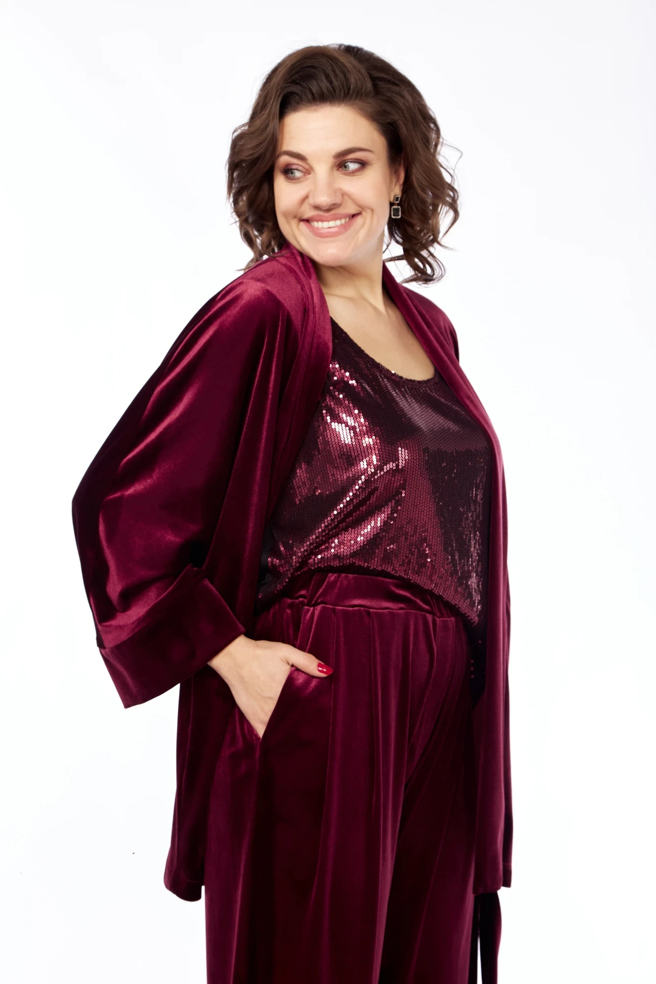 Длина жакета по спинке 73 см, длина плечак+длина рукава 64 см, длина майки по спинке 62 см. Длина брюк 105 см.